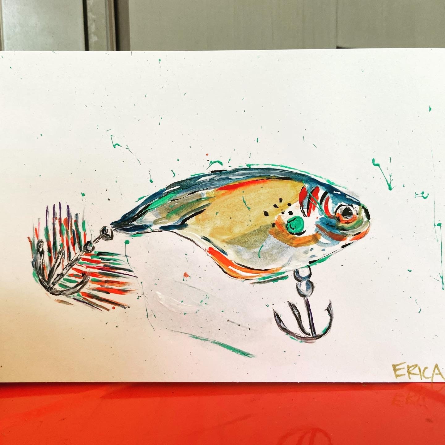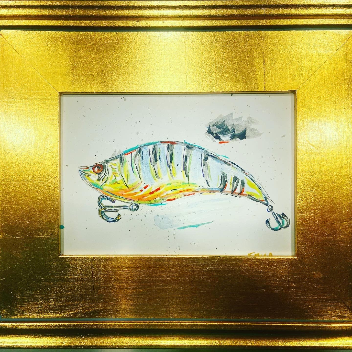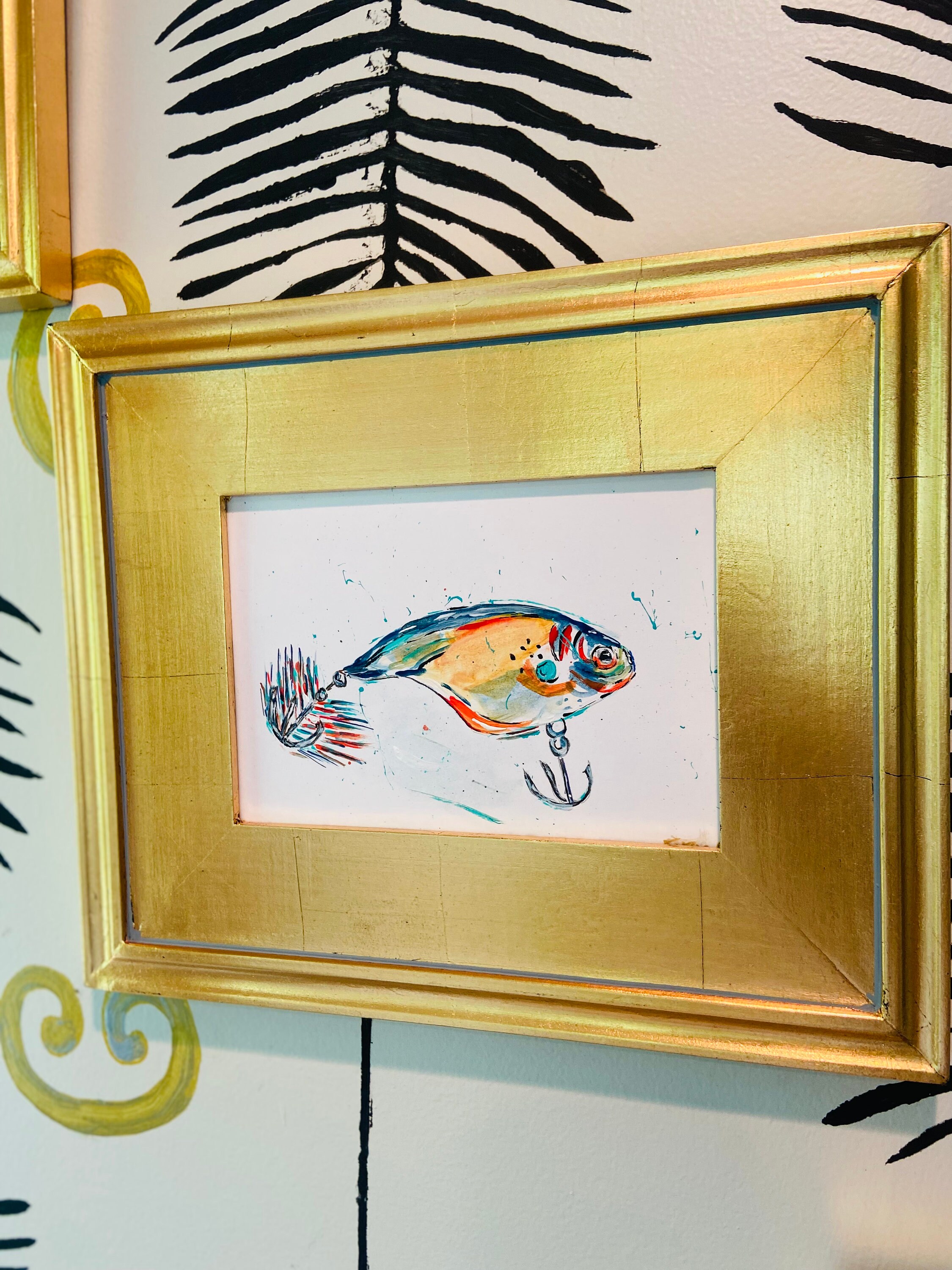 Set of three framed fishing lure prints that are sure to delight. These high res prints are printed to 5x7 heavy-weight paper and framed to 8x10 in the gold leaf/embossed frames. Perfect for that special fisherman in your life or a cabin home!