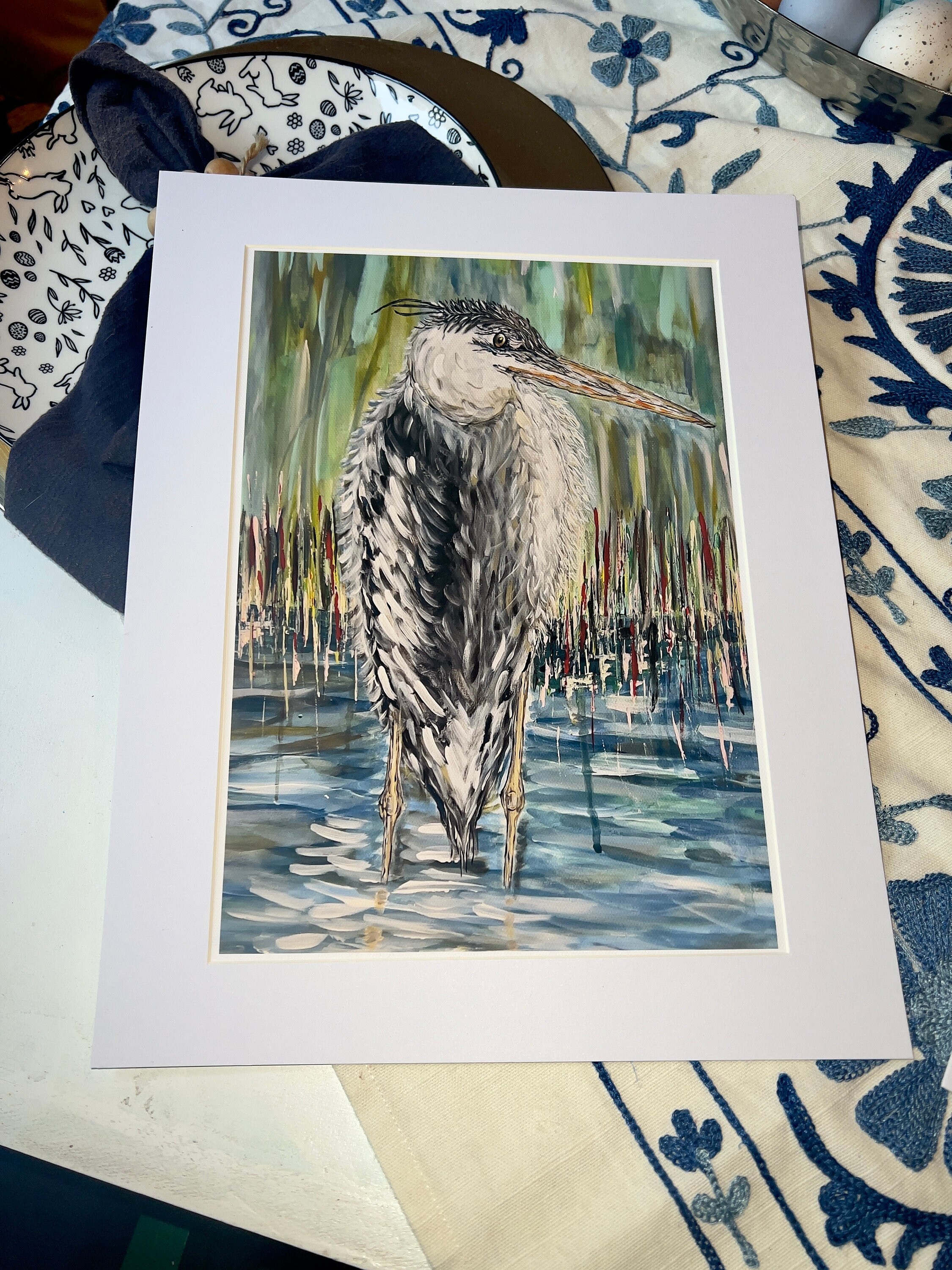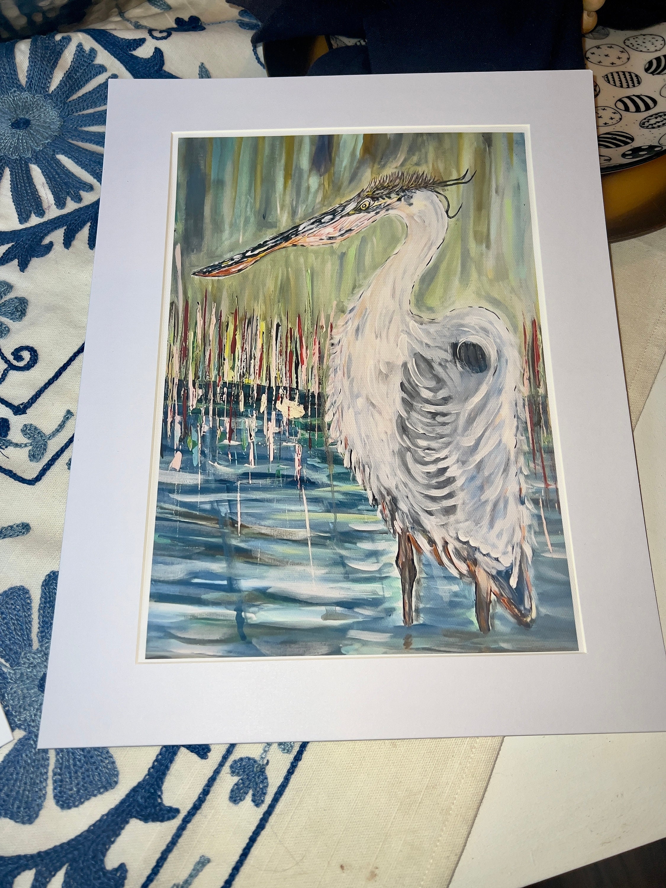 This listing is for the pair of Herons printed on extremely durable and exquisite canvas paper at image size of 8x10 matted with a single bevel white mat to 11x14 overall size each. These come unframed at this price but they fit 11x14 frames perfectly. I even have a gold bamboo frame that pairs well with these and I can send you the spec for a third party purchase through the supplier.