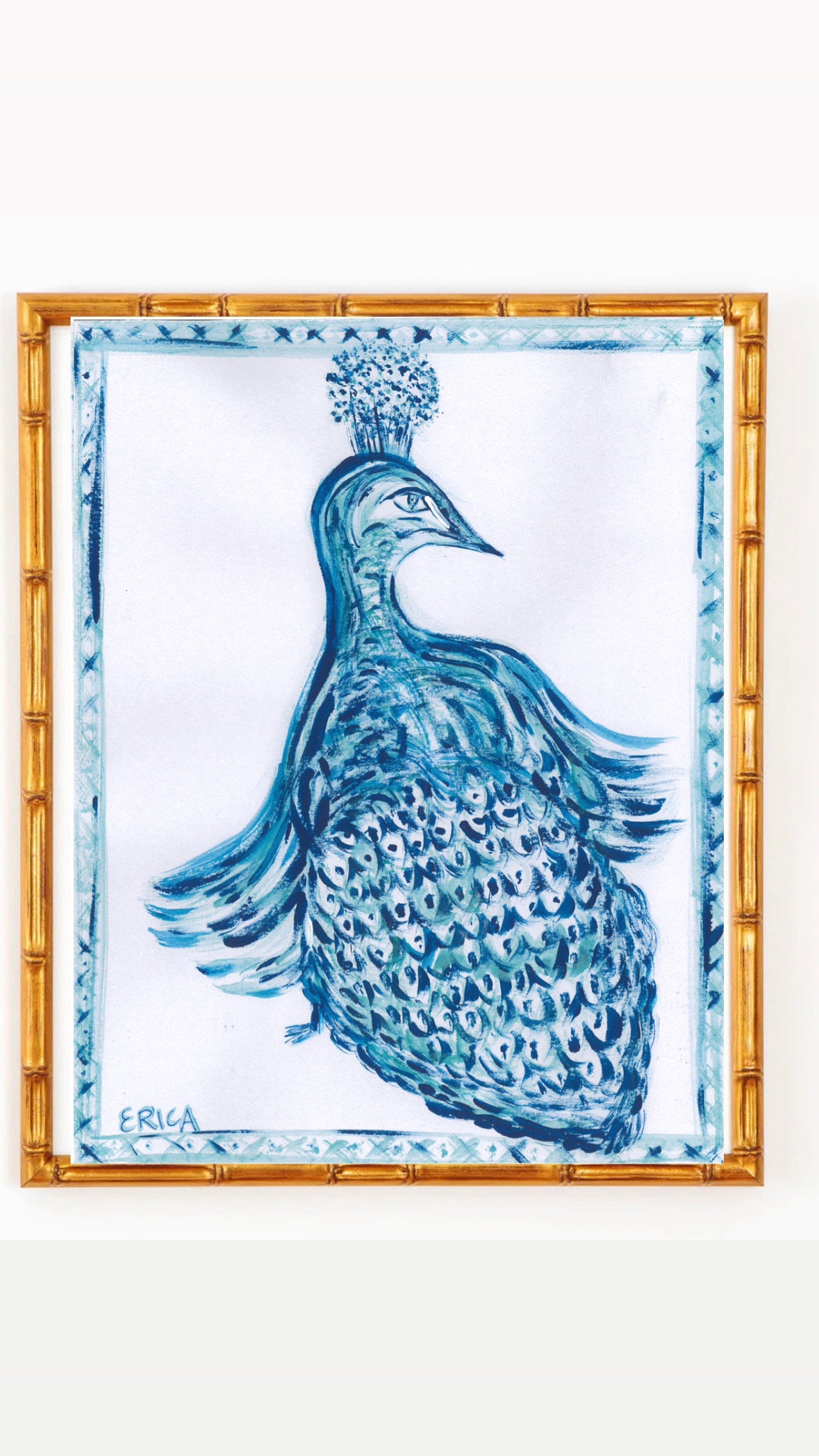 This listing is for the set of four fine art 130lb artist’s paper prints of pagodas on blue linear background border paper sized at 11x14; framed in these exquisite gilded gold leaf bamboo frames at 12x15x1. These come ready to hang with a single metal sawtooth hanger on the back and real glass fronts.