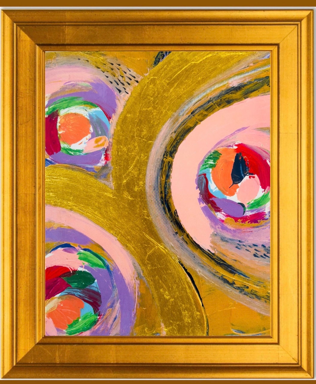 Trio Abstract Fine Art Canvas Paper Gicleès Framed in Gilded Gold Leaf Wide Frames
