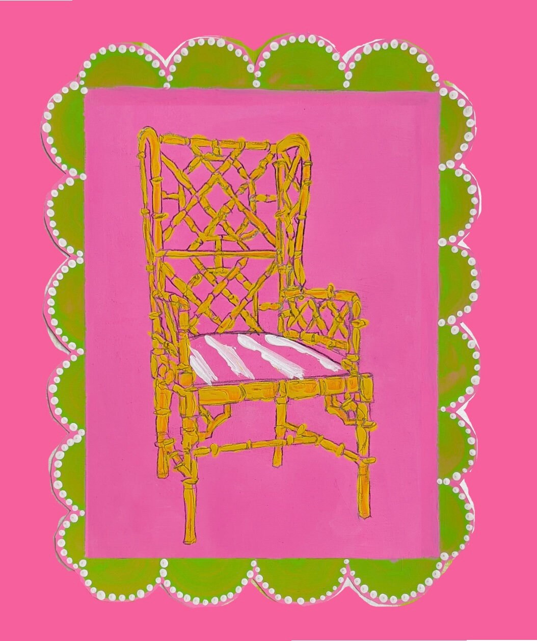 The prints are printed on durable canvas paper and signed on the back by me, the artist. I also go back over each print with accents of white paint for the dotted border giving some texture.