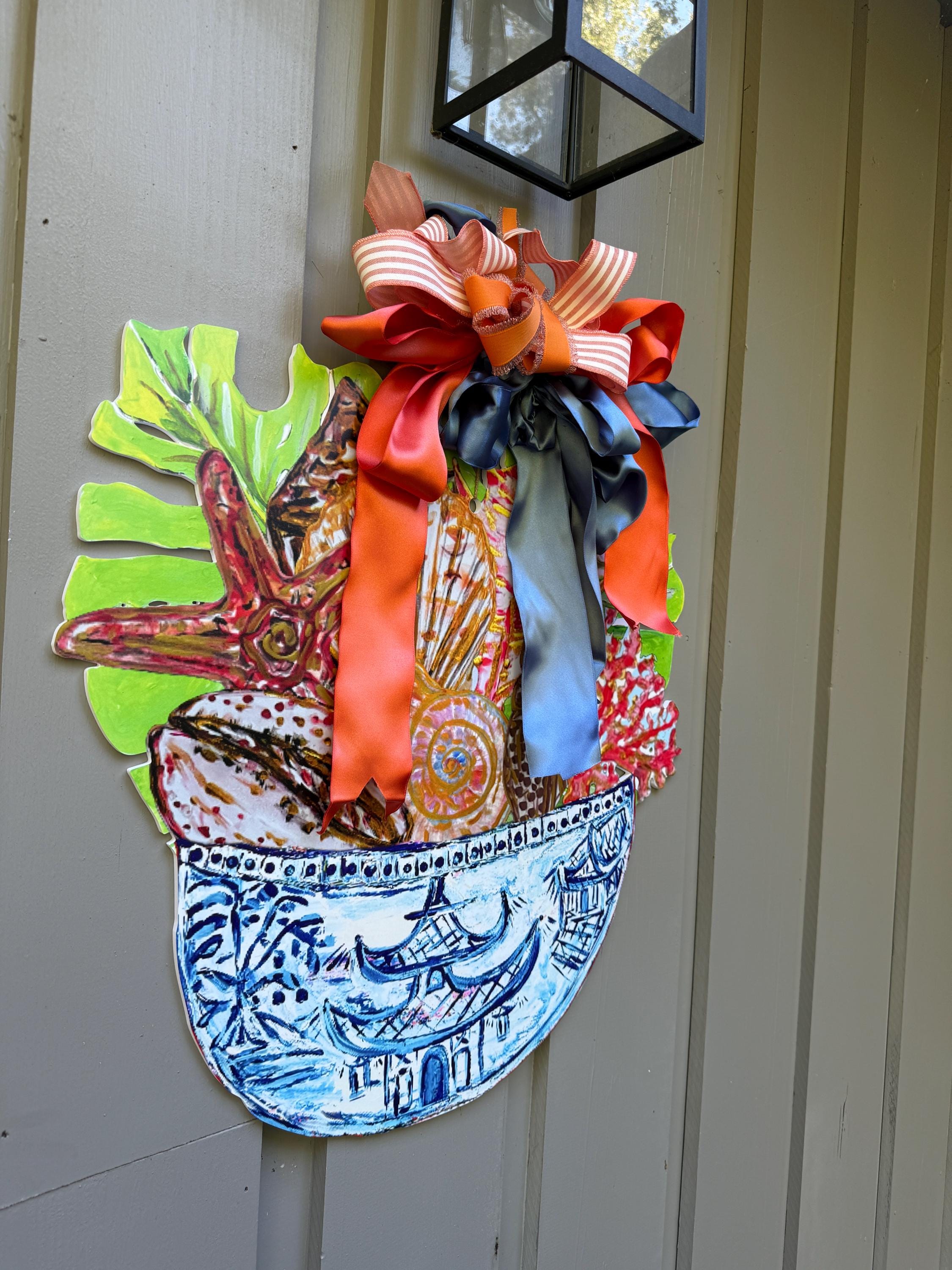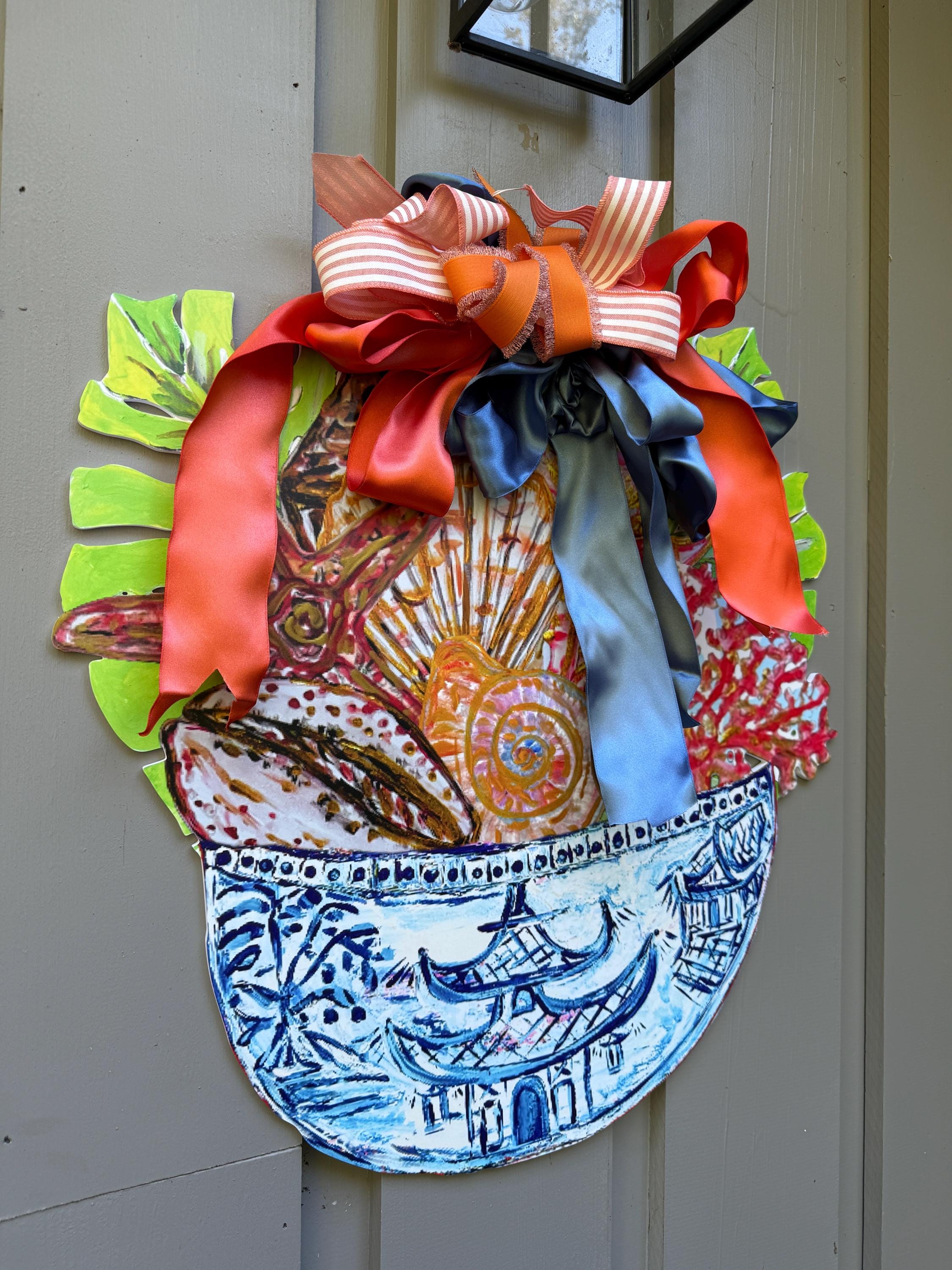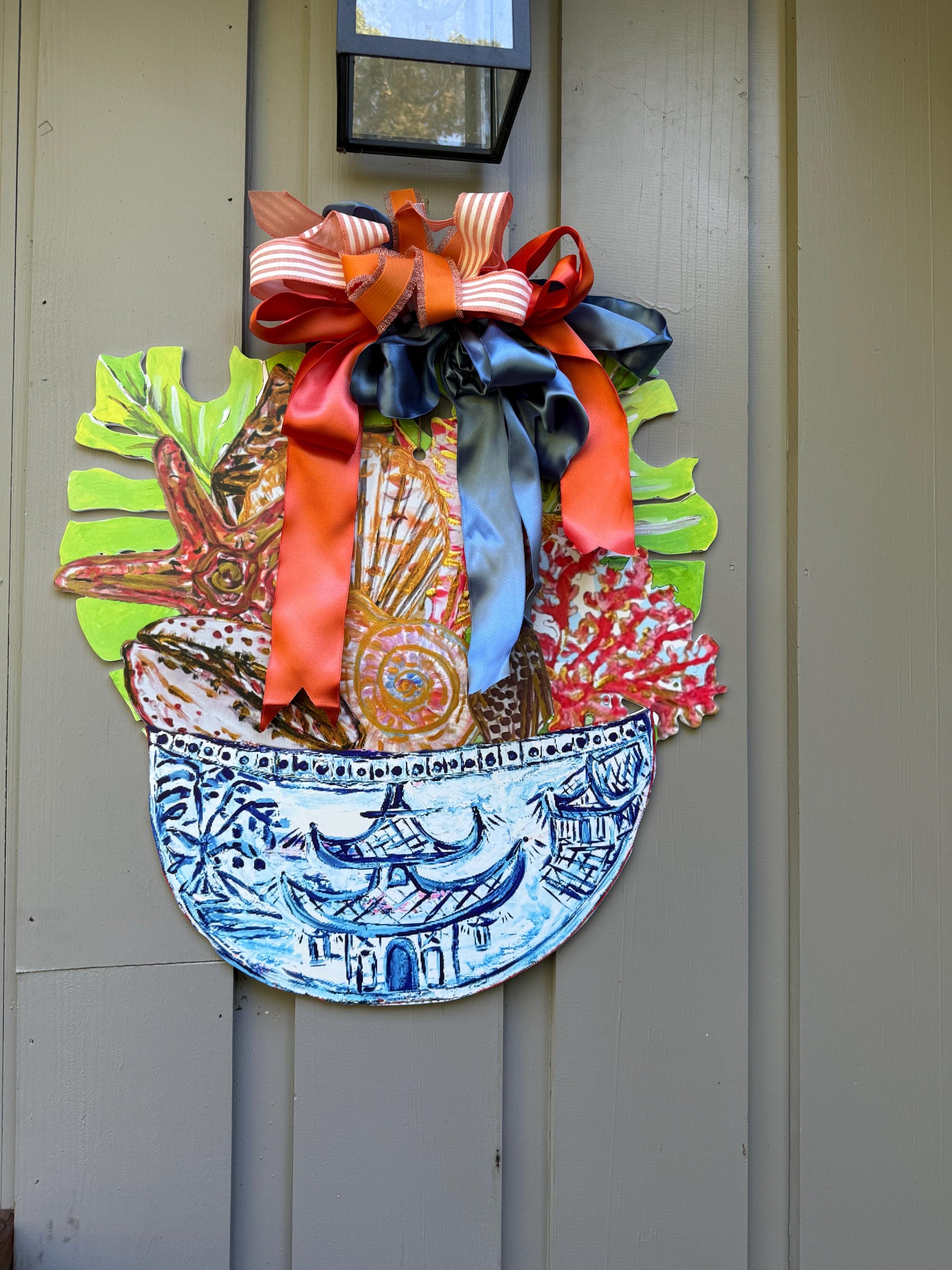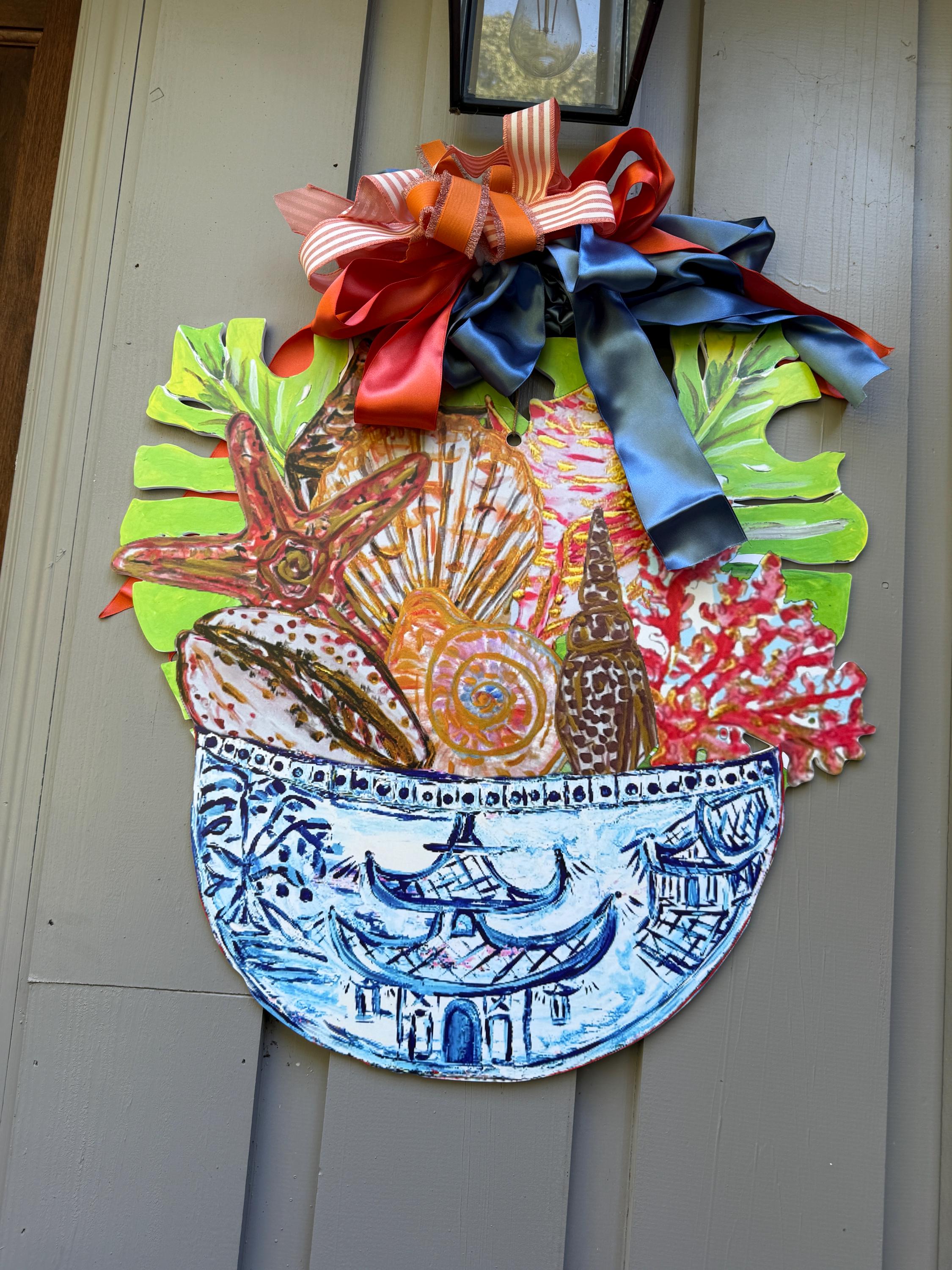 Shells in Ginger Jar Door Hanger: Large Coastal Decor