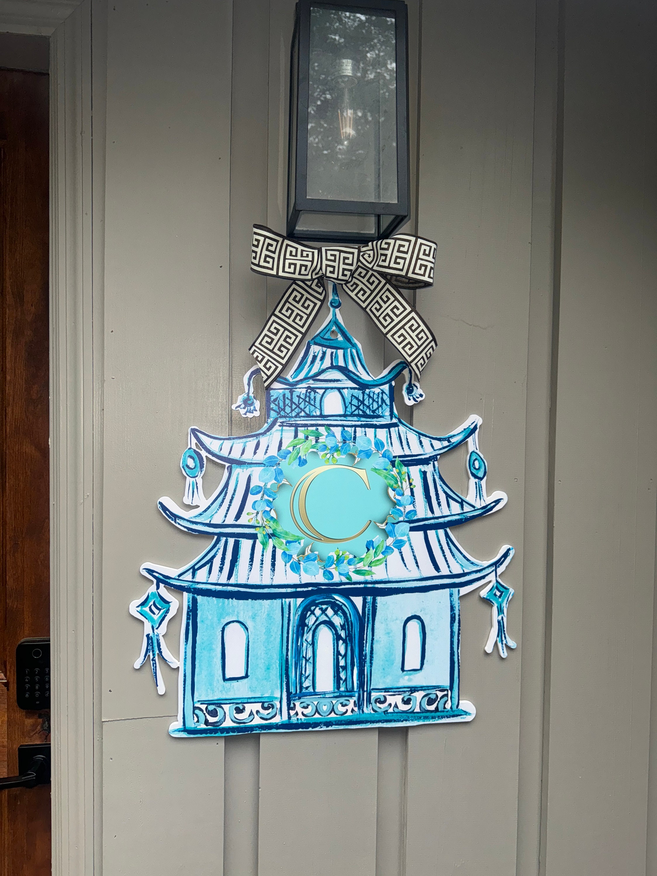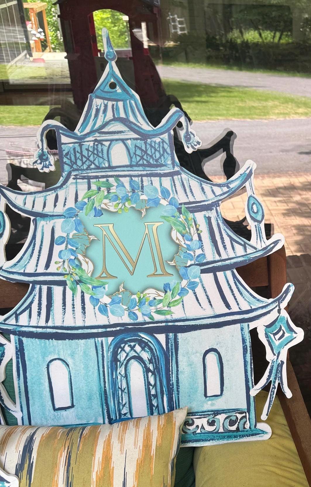 LARGE Door Hanger Blue Pagoda with Personalized Monogram