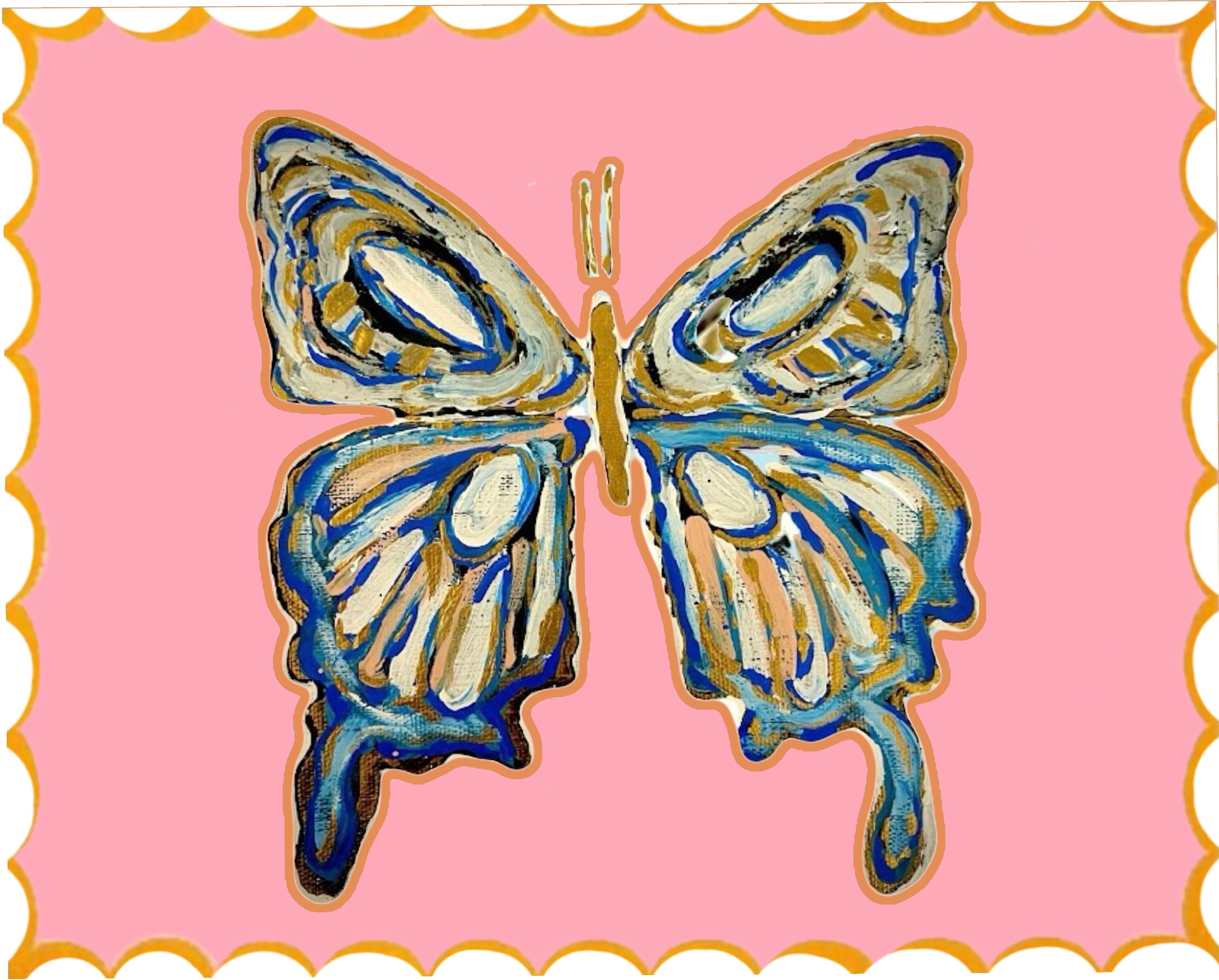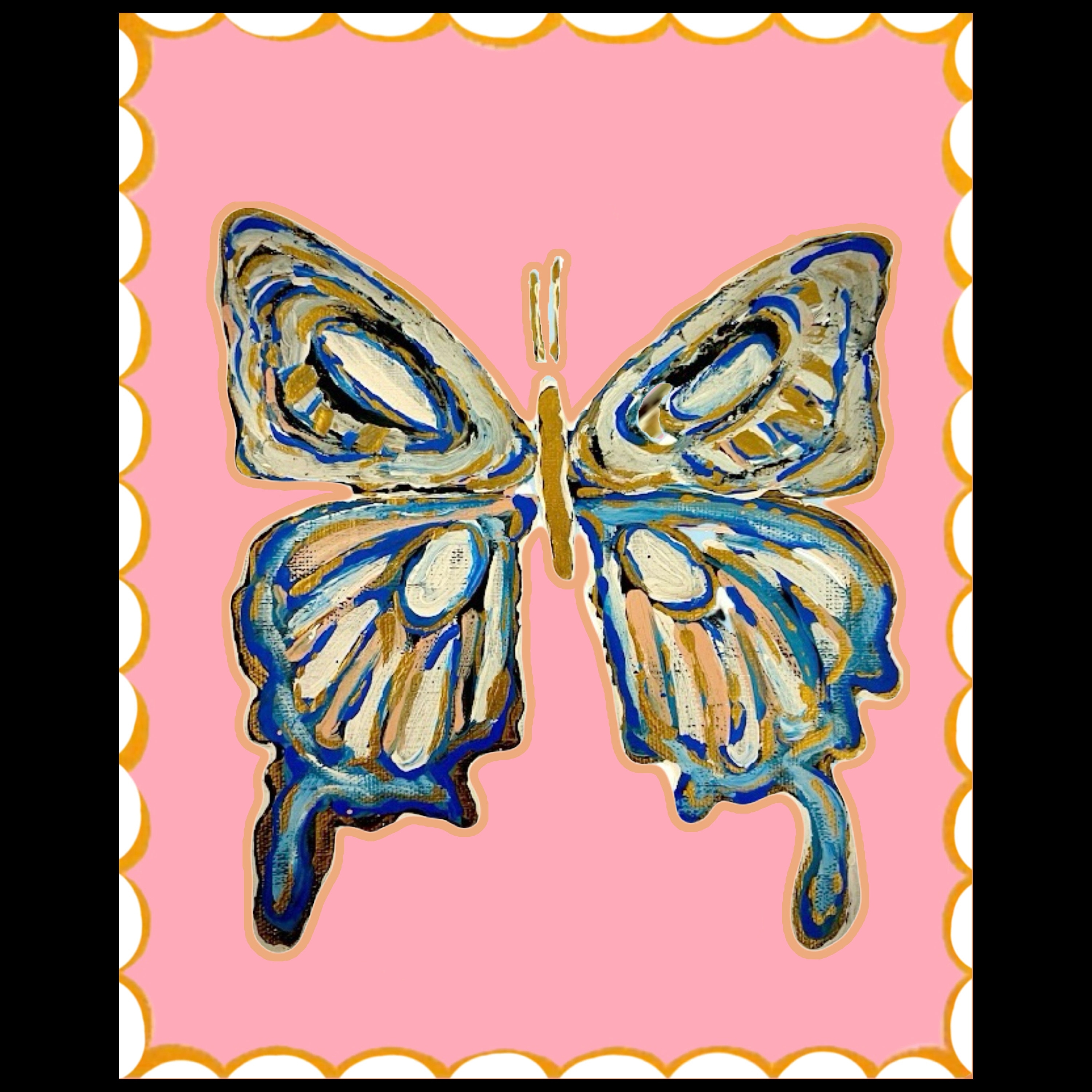 Butterfly Art Prints: Gold Bamboo Frames, Matted Fine Art Paper (Set of 2)