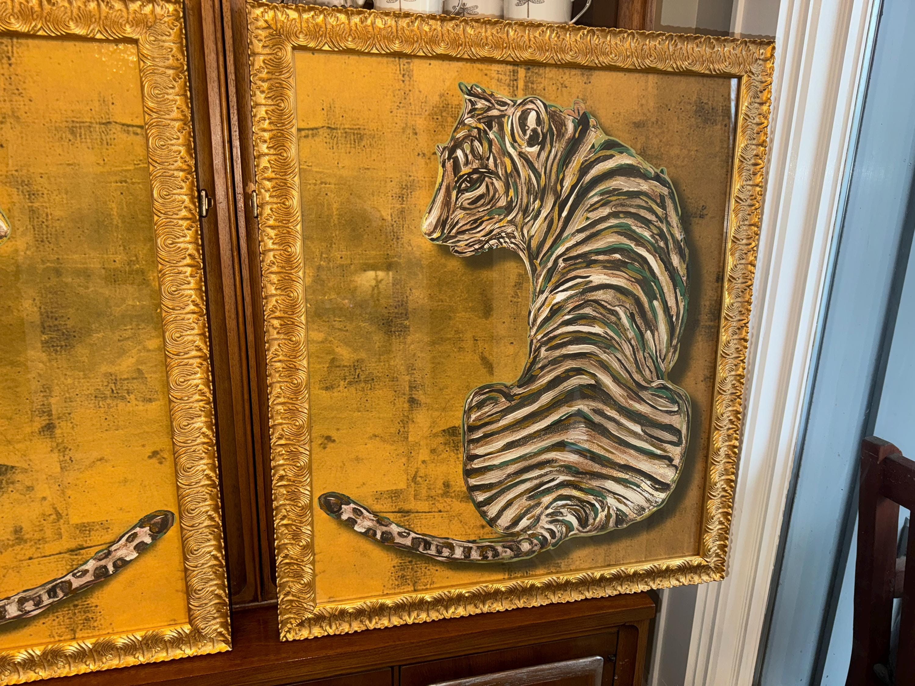 Golden Tigers Giclee Print Pair: Baroque Gold Leaf Frames