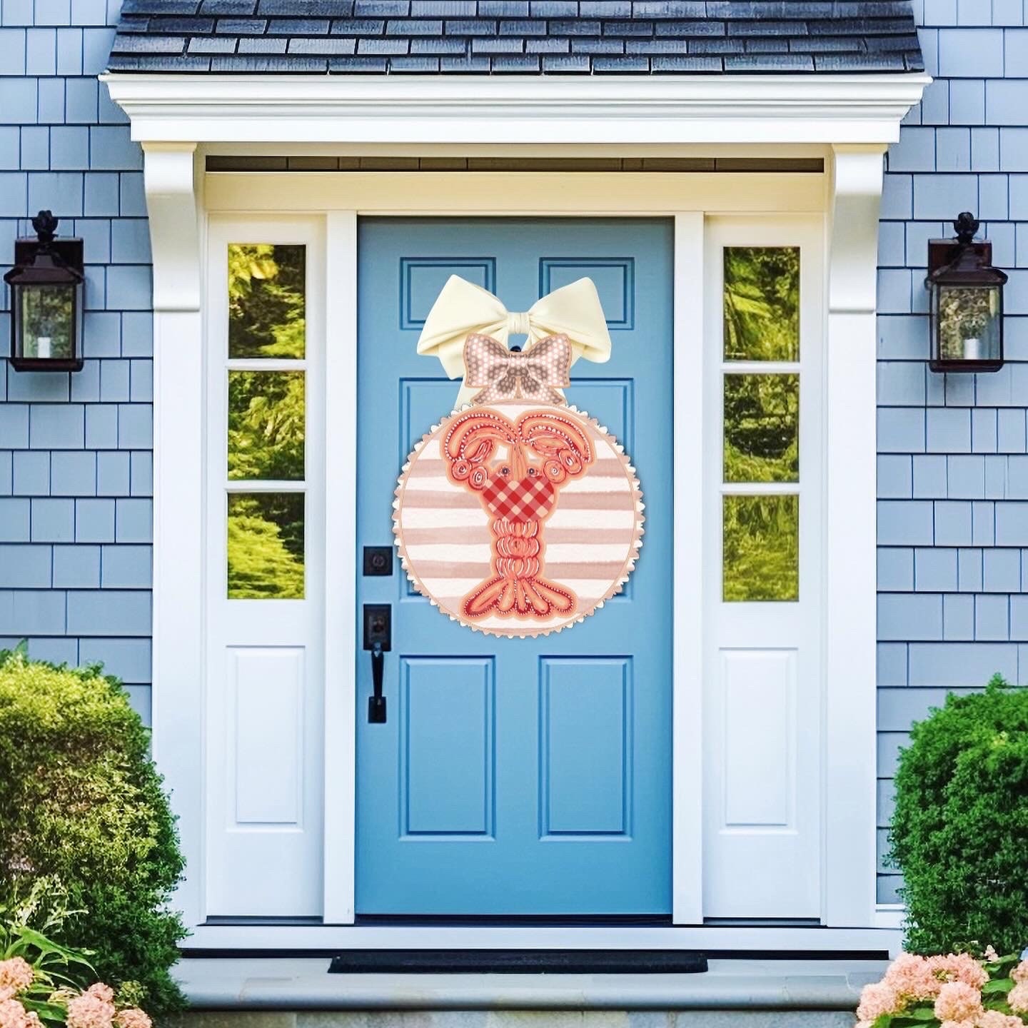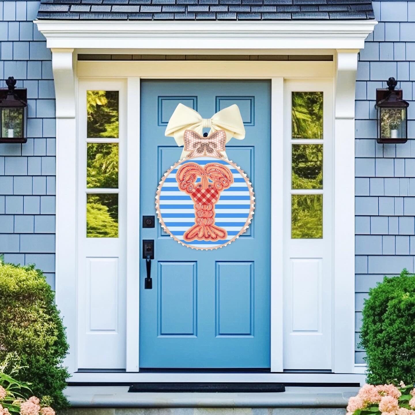 Large Lobster Door Hanger: Striped Nautical Decor (30 inch)
