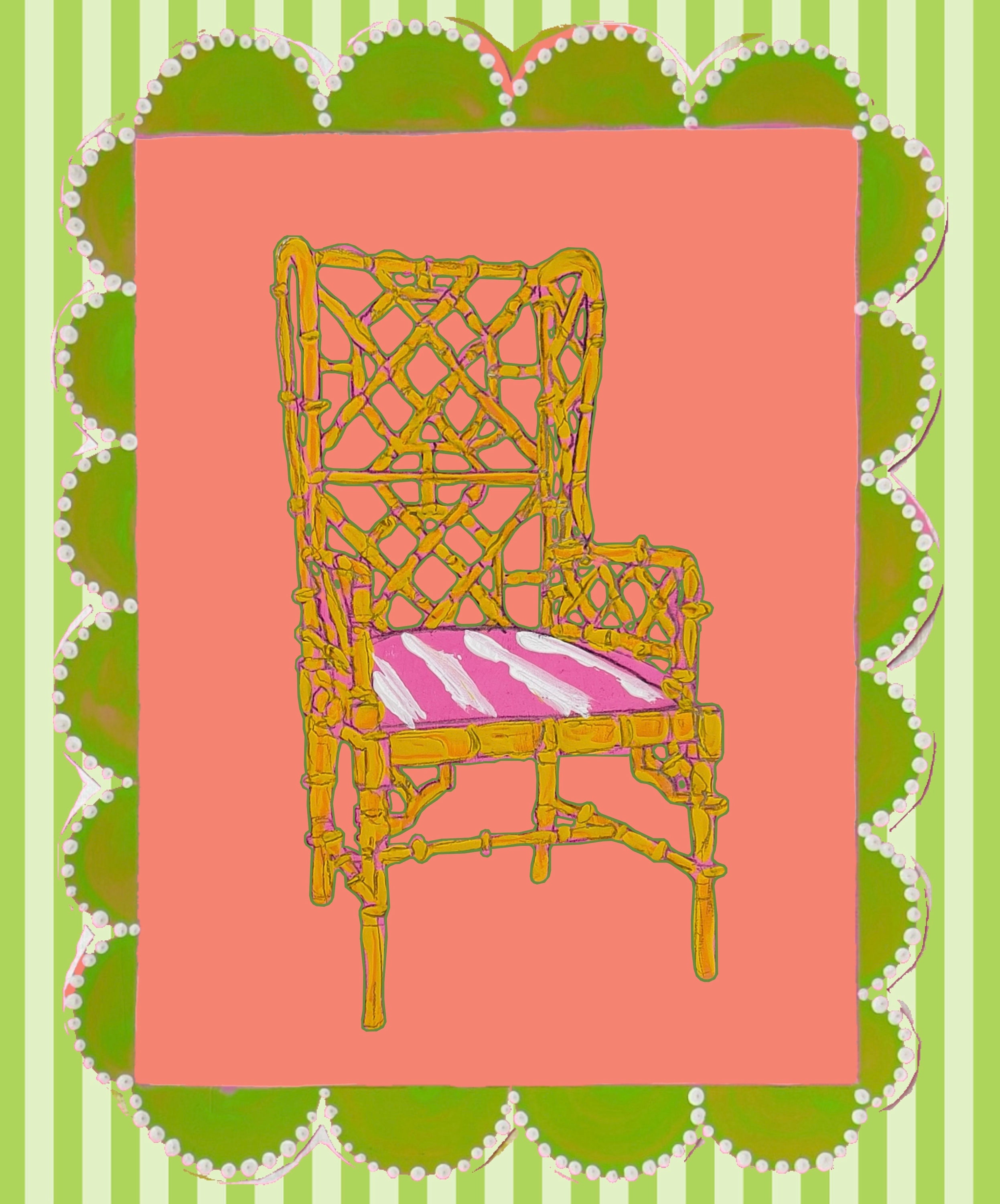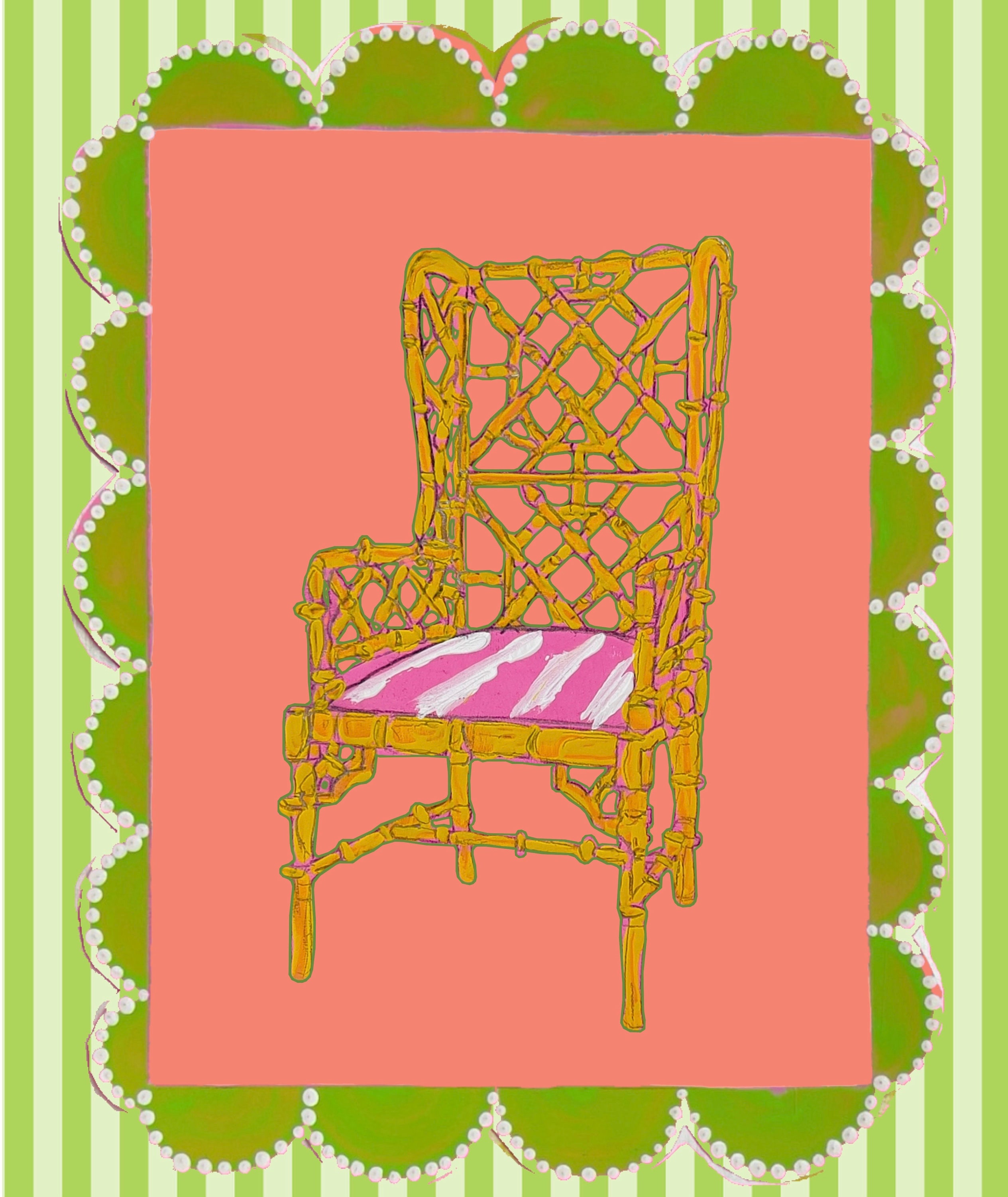 Chinoiserie Bamboo Chair Art Prints: Framed Giclee Pair