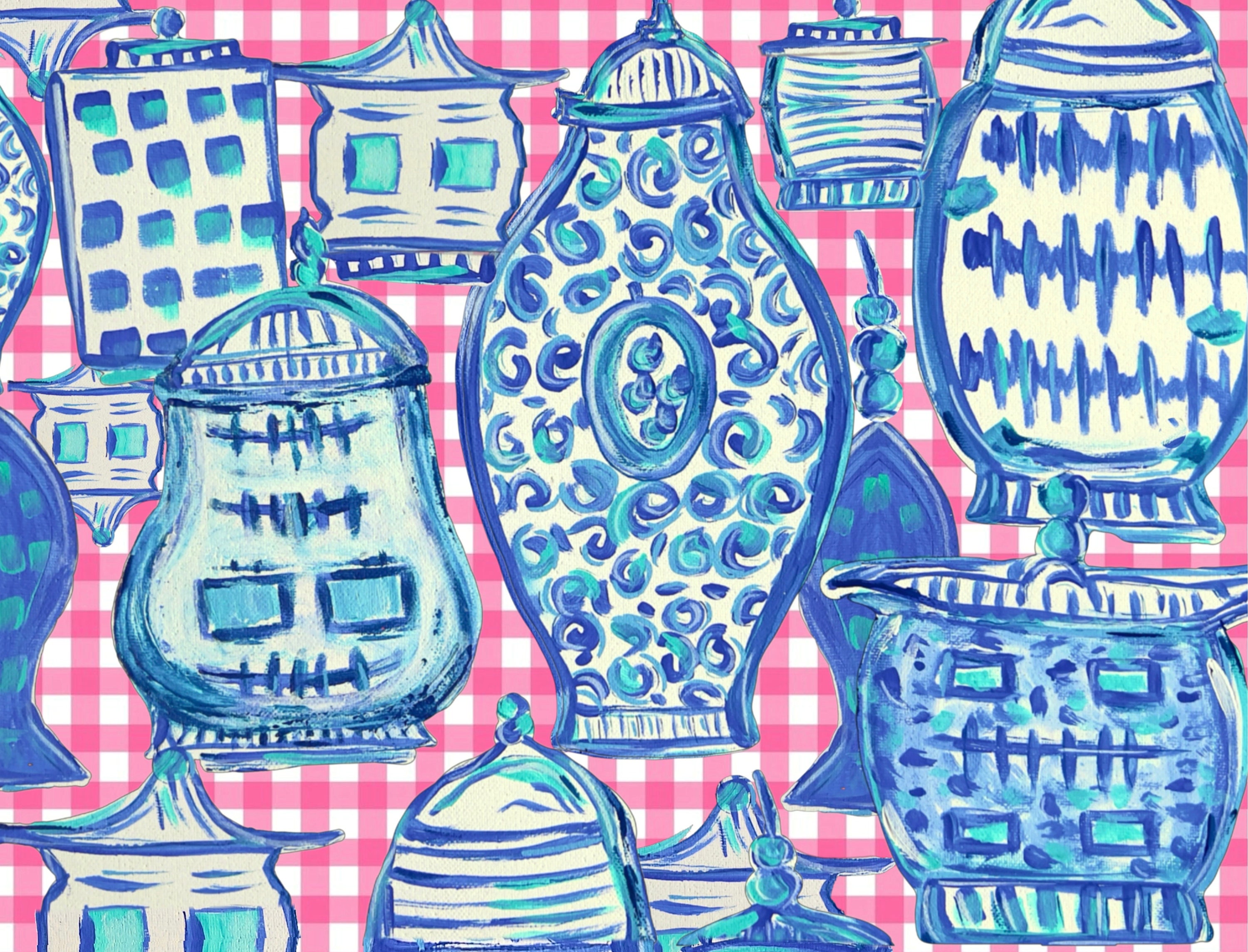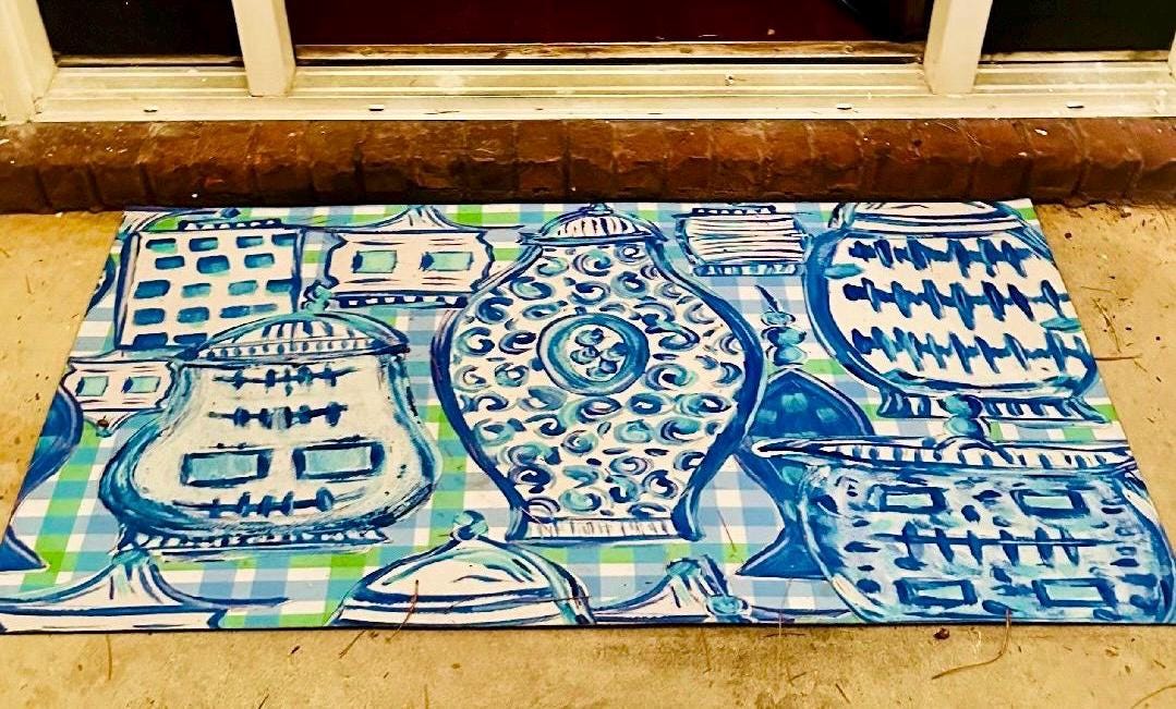 Oversized Ginger Jar Door Mat: Colorful Entryway Rug (24x48)