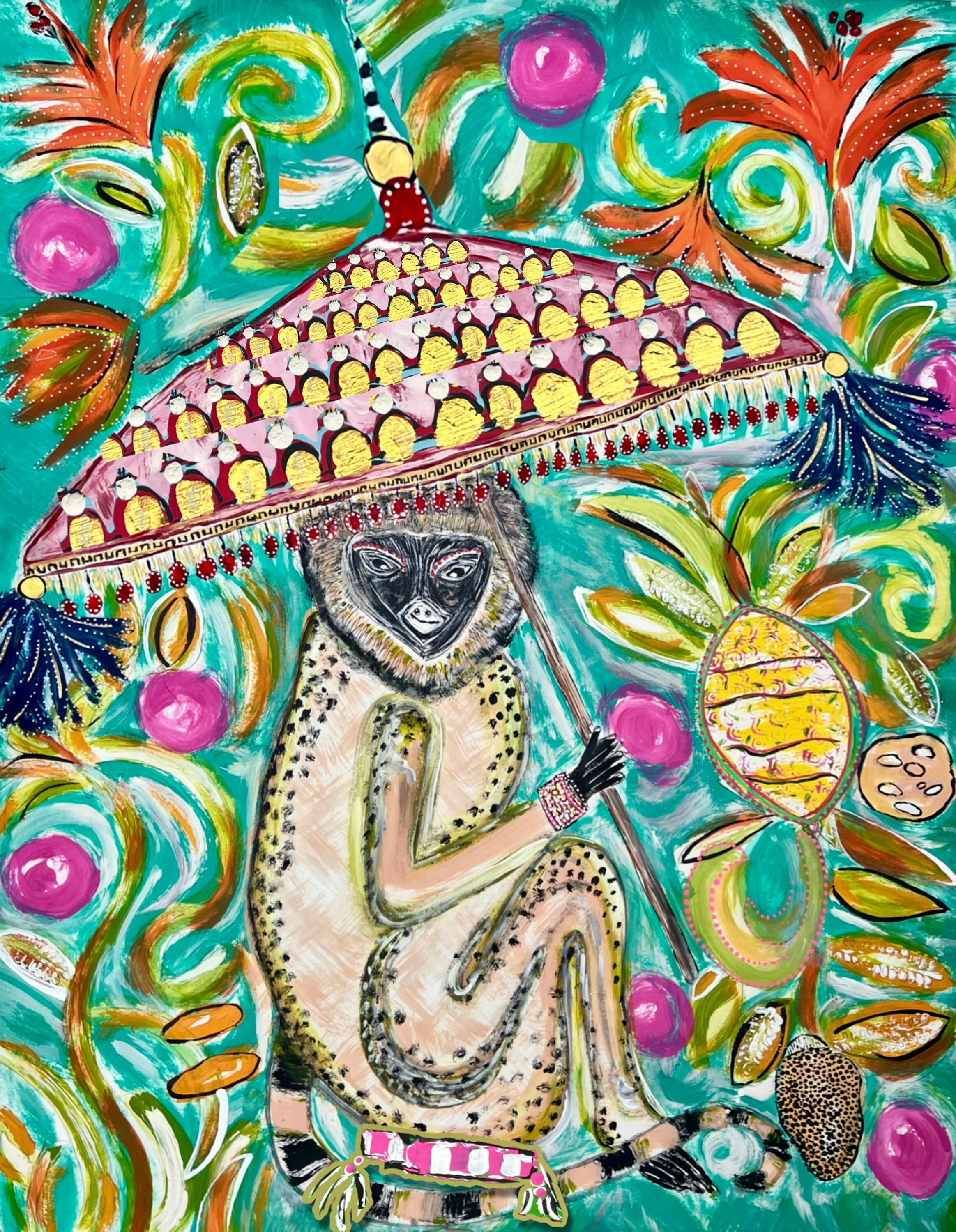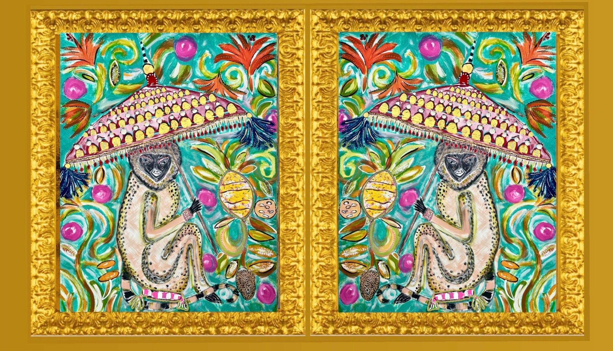 This listing is for the pair of large fine art canvas paper gicleès of “Chinois Parasol Monkeys” at 20x24 size. These prints are so very pretty in person. I go back over each one with accents of 14k liquid gold paint in the parasol making it look bejeweled and sign each one on the back.
