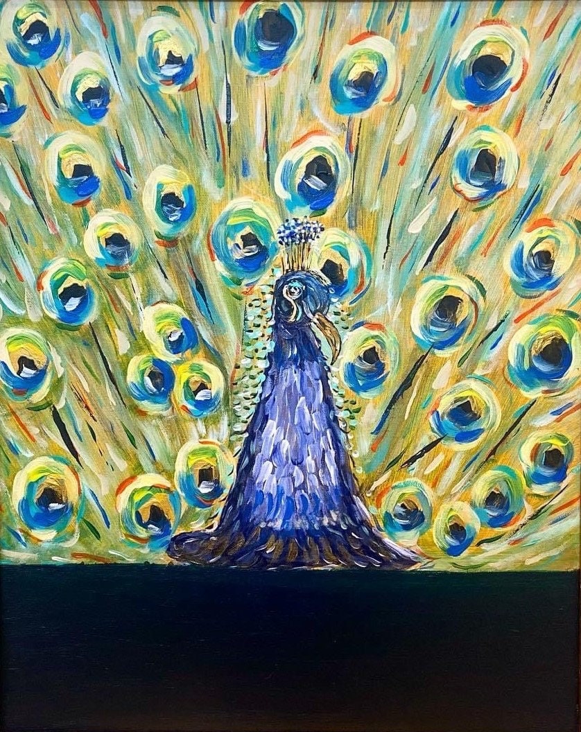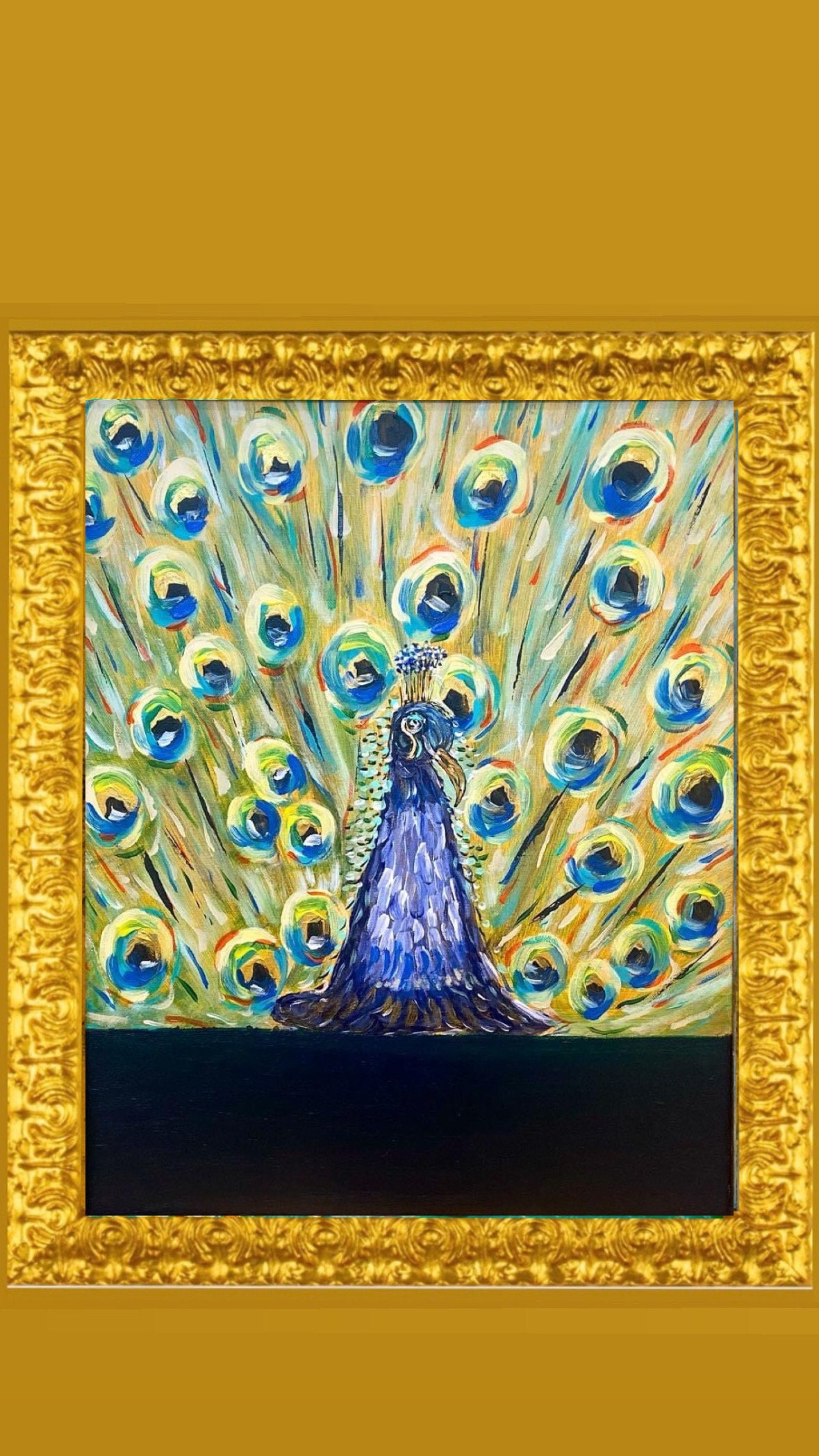 This listing is for the single large fine art canvas paper gicleè of “Peacock Pat” at 20x24 size. This canvas paper print is so very pretty in person. I go back over each one with accents of 14k liquid gold paint in the feathers making it look bejeweled and sign each one on the back.
