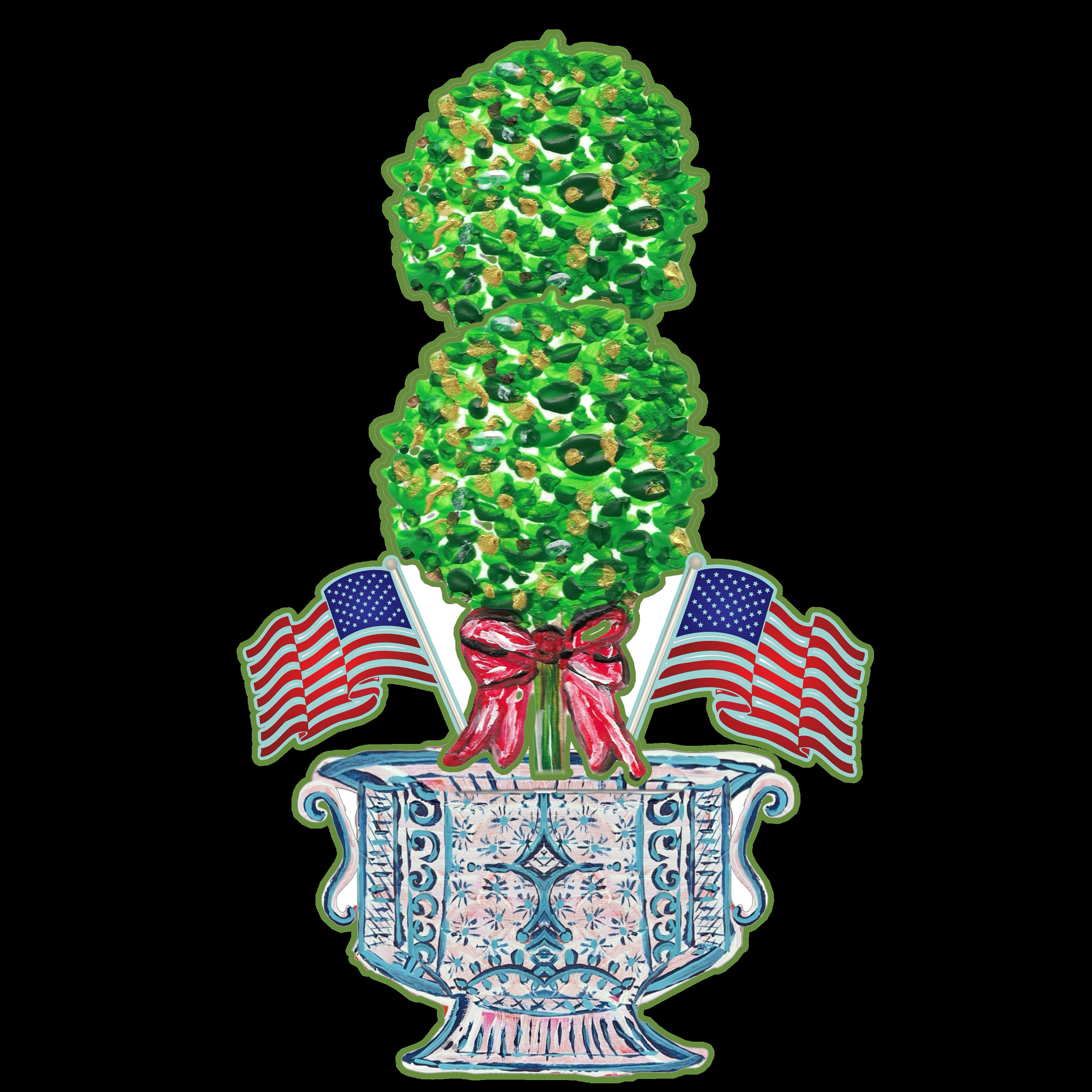 LARGE Patriotic American Flag Topiary in Ginger Jar Door Hanger