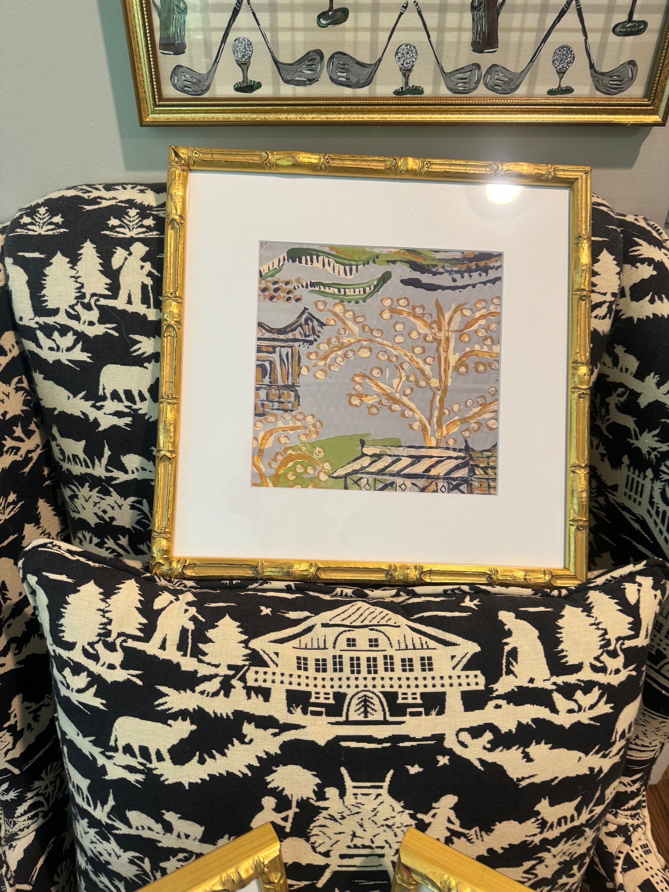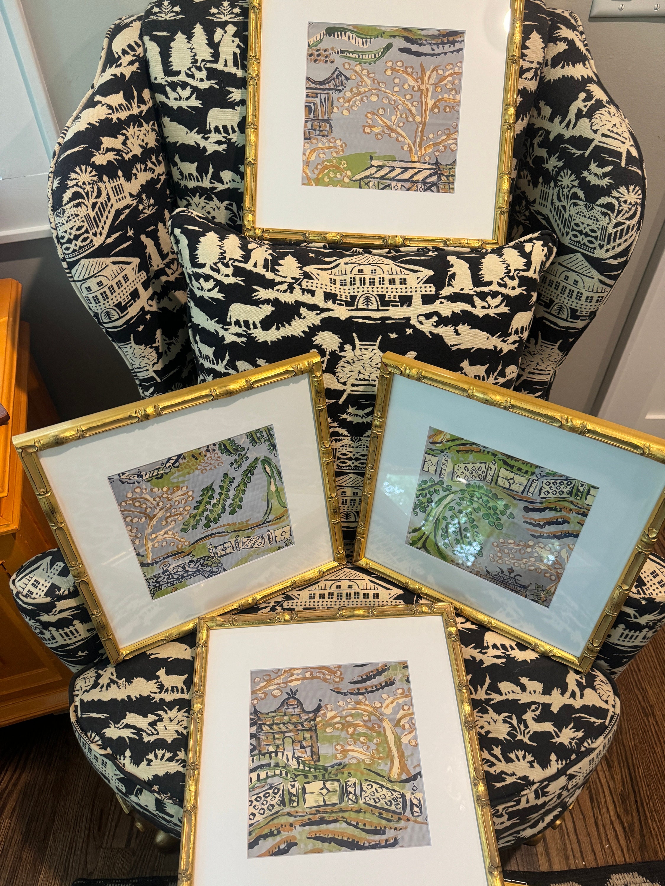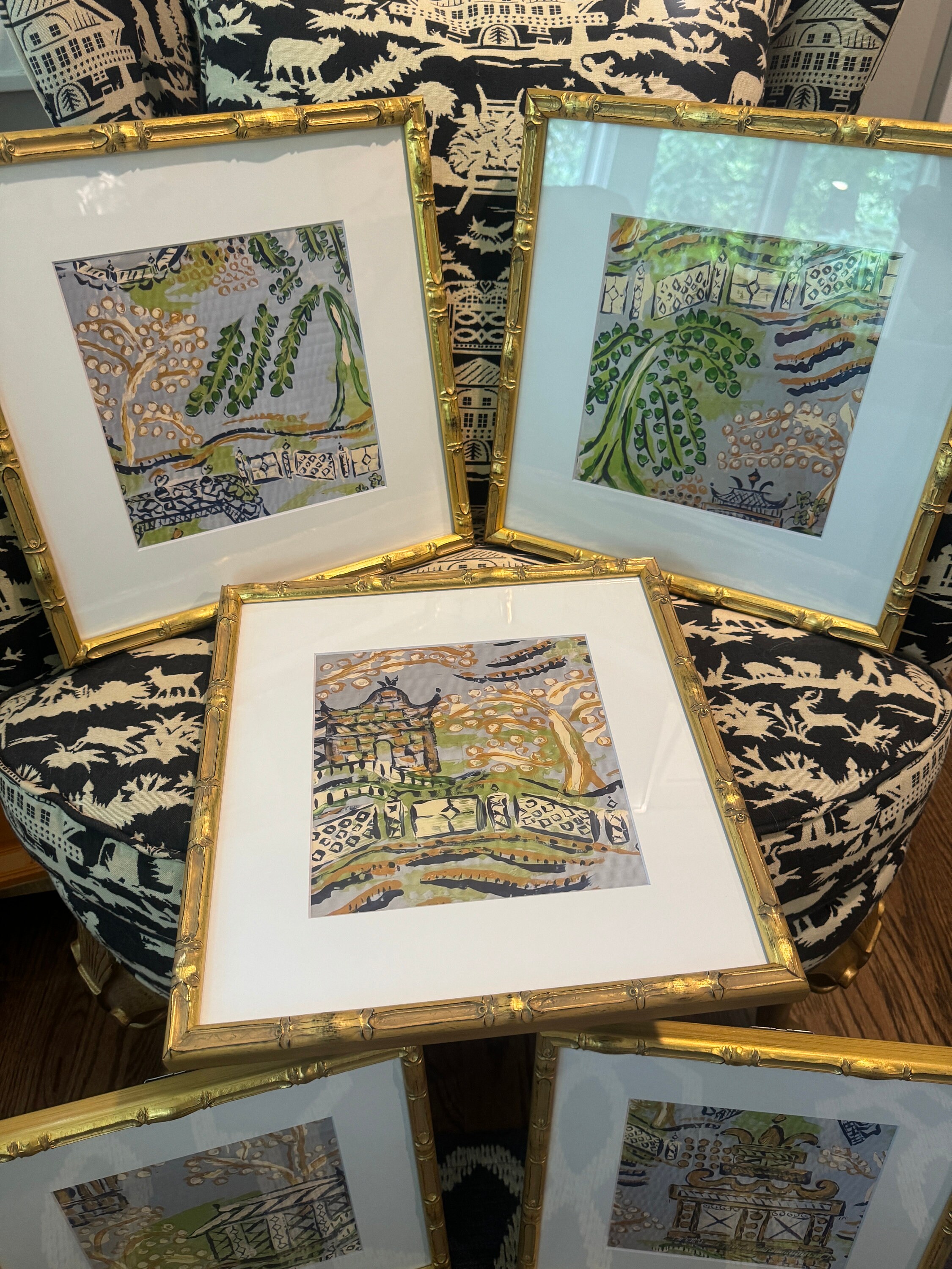 Chinois Landscape Prints: Set of Six Matted Canvas Paper Giclée Art Prints (come unframed)