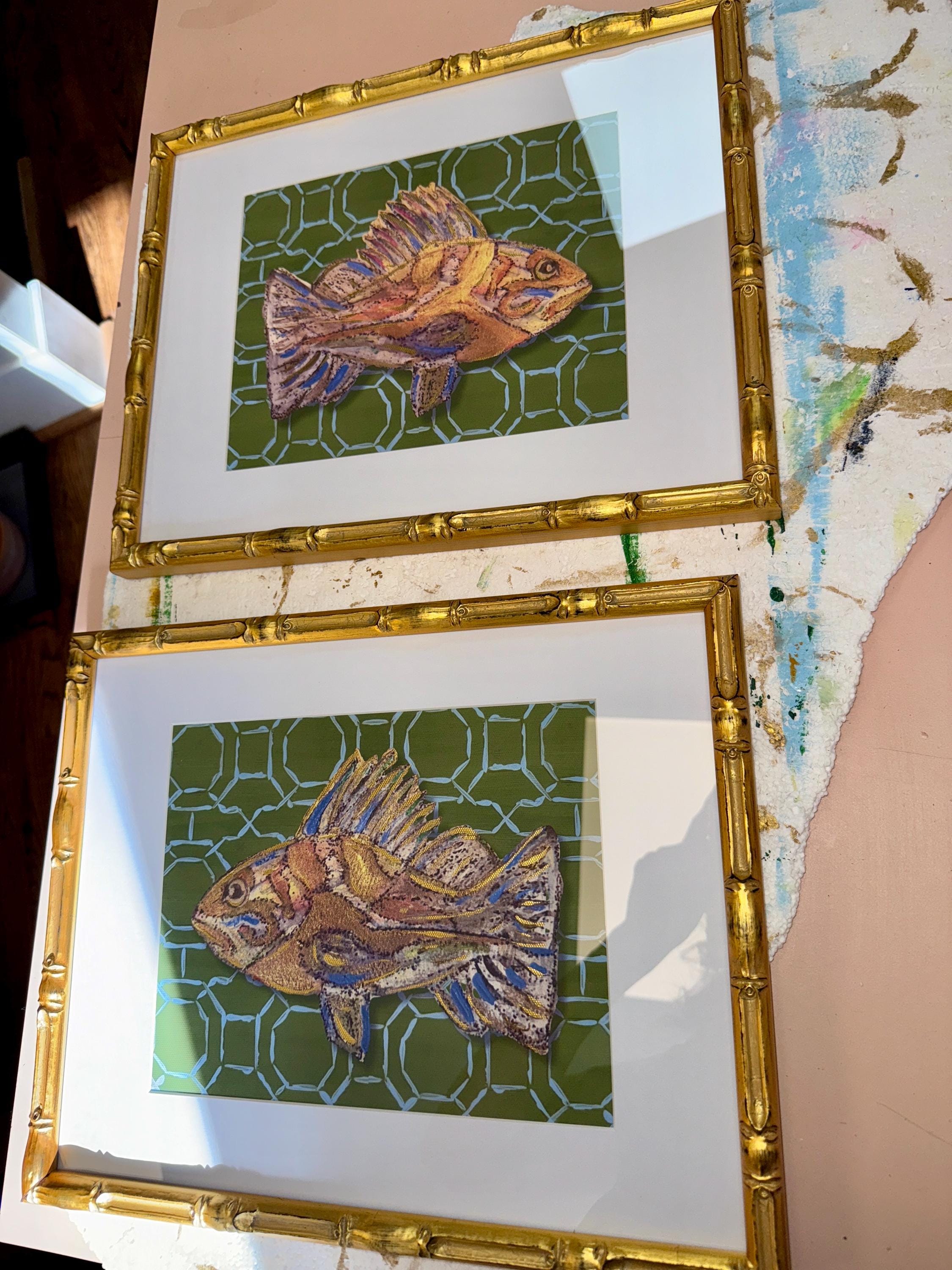 Chinoiserie Fish Art Prints: Gold Bamboo Frames, Fine Art Paper (Set of 2)