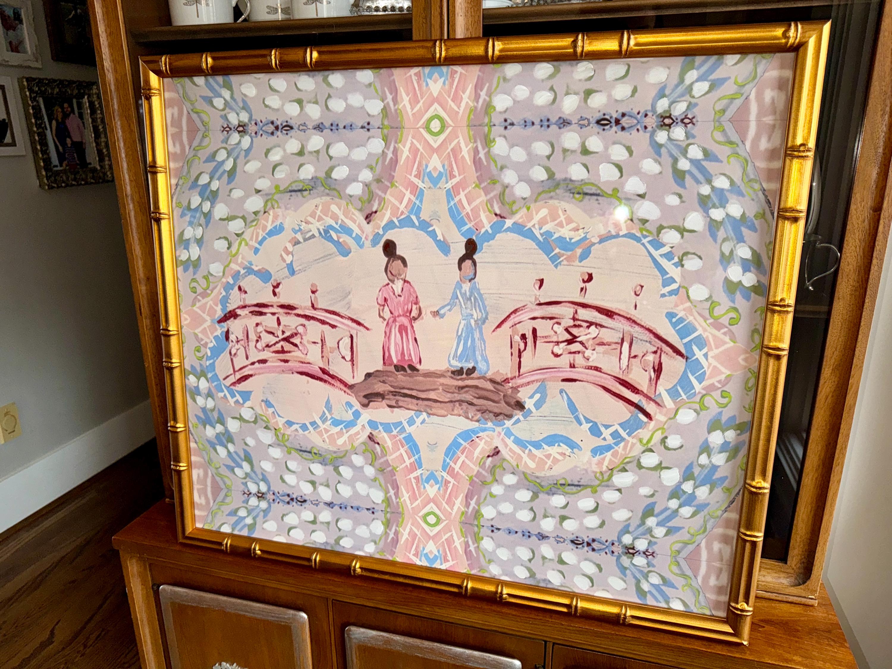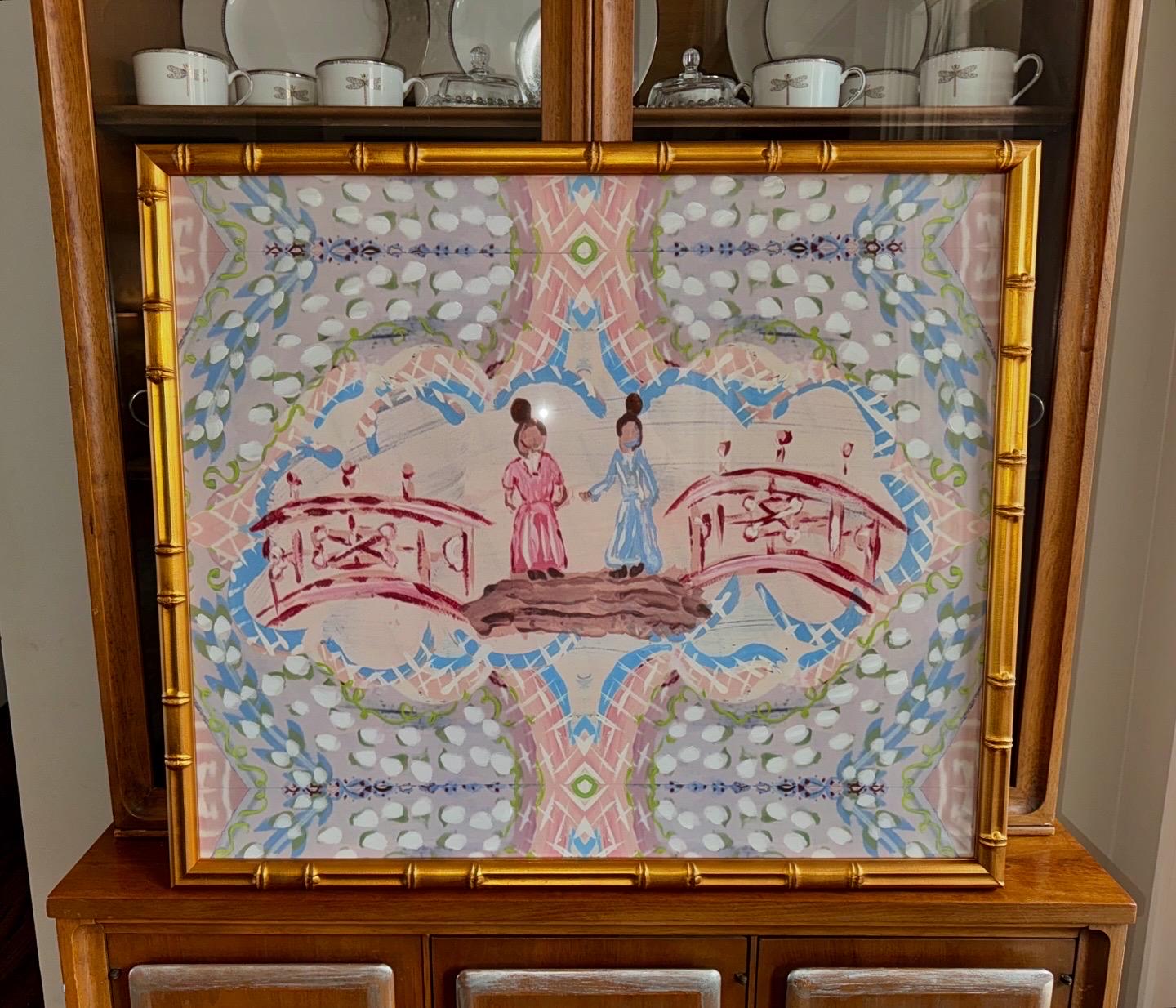 This listing is for the single fine art canvas paper print of Chinoiserie Kitsch on durable canvas paper at 24x28 image size. Framed in this exquisite 14k gilded gold leaf wooden bamboo frame at overall dims of 26x30; this comes ready to hang with a single metal wire hanger and metal D clips.