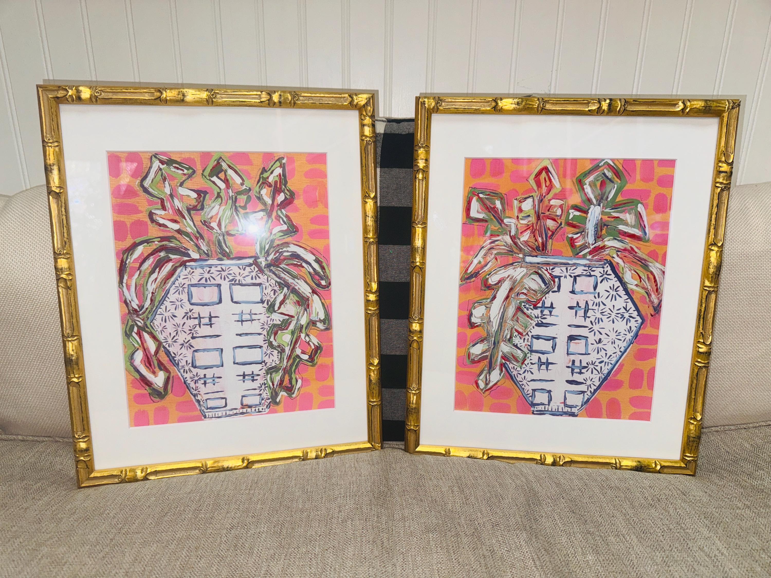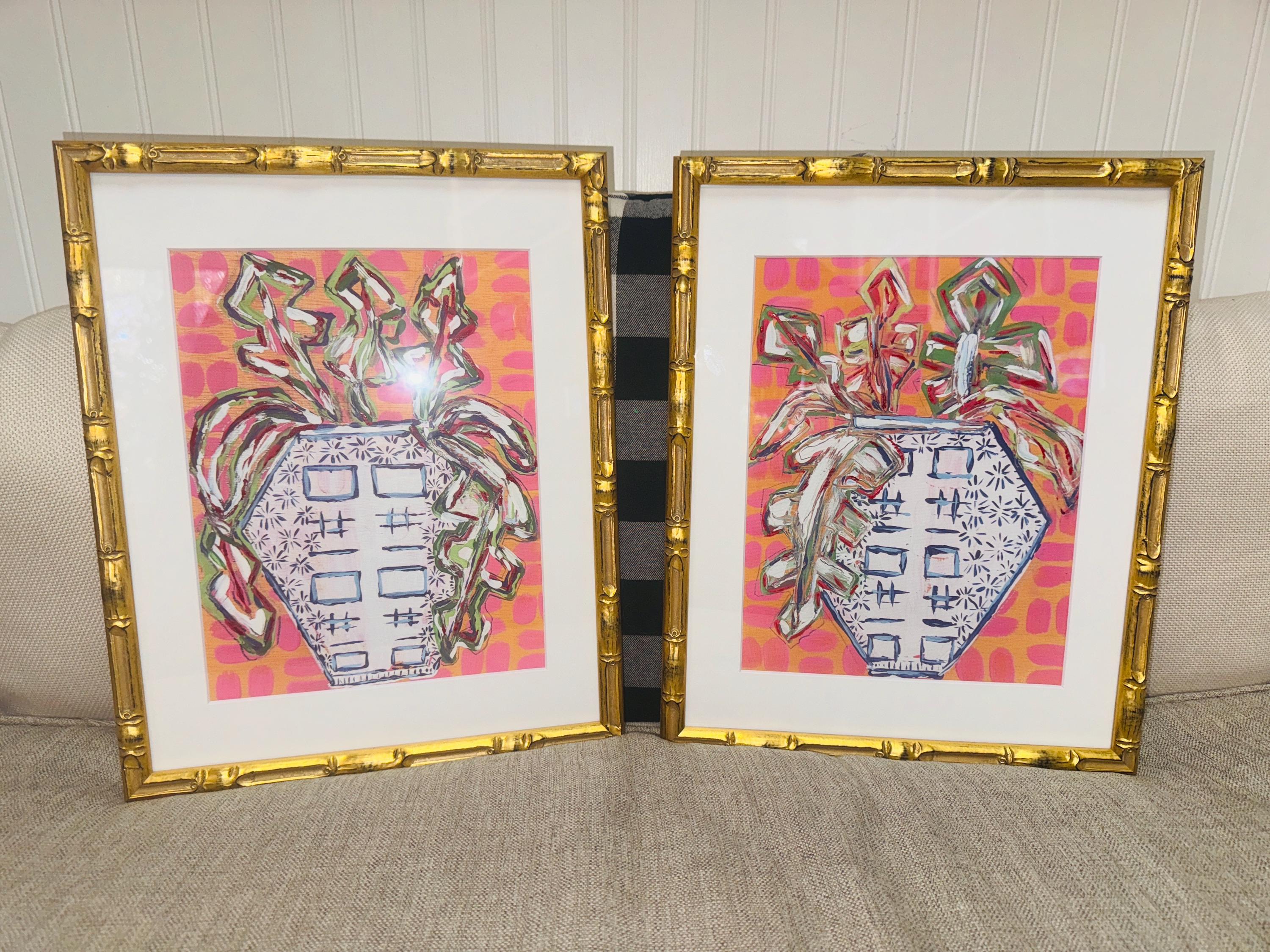 This listing is for the pair of fine art canvas paper prints at 8x10 image size; matted with a single white bevel mat to 11x14; then framed in these exquisite wooden gold bamboo frames to overall size of 12x15 each. These come ready to hang with a single metal sawtooth hanger on the back and come with real glass fronts (not the cheaper plexi option).
