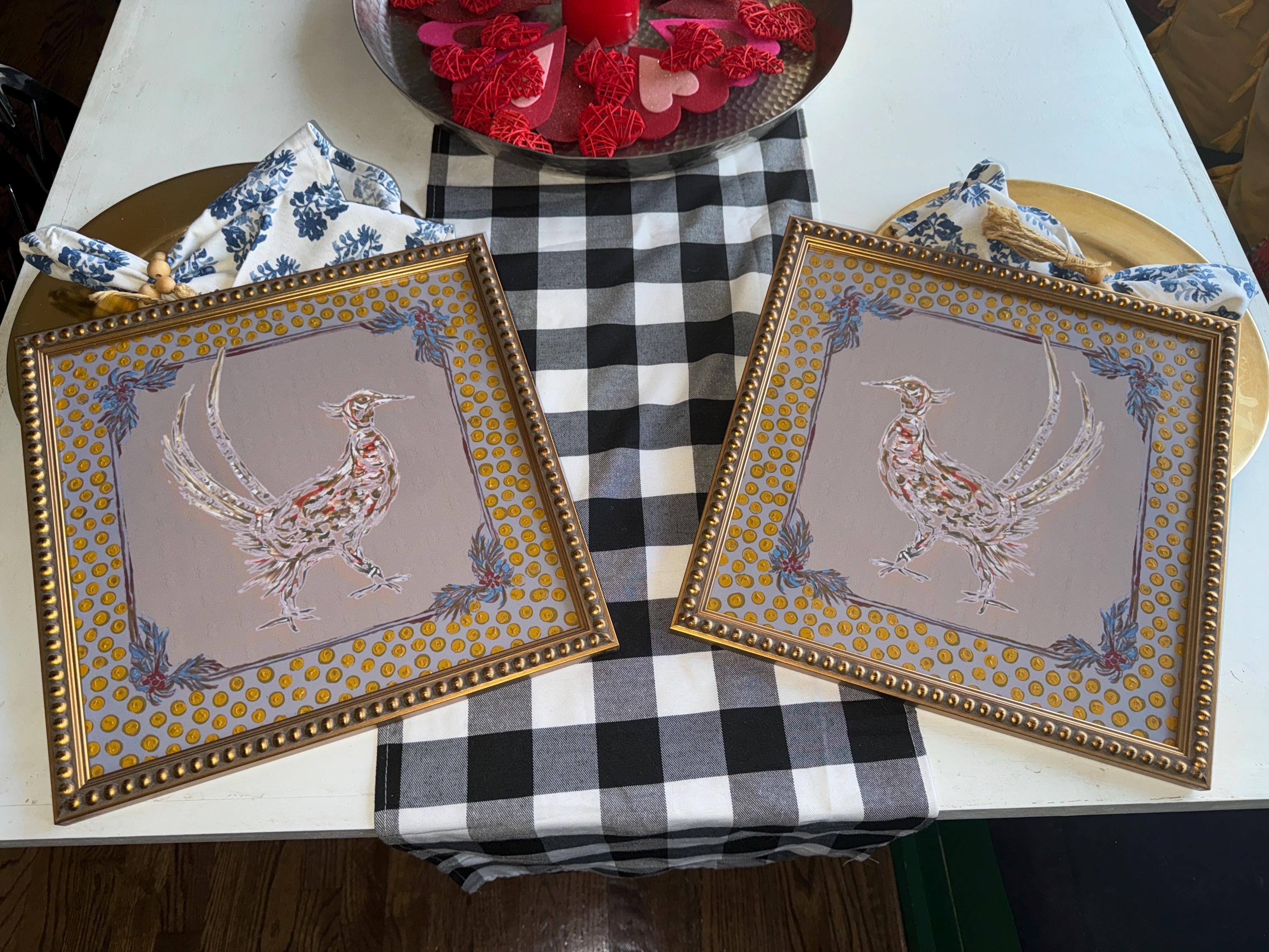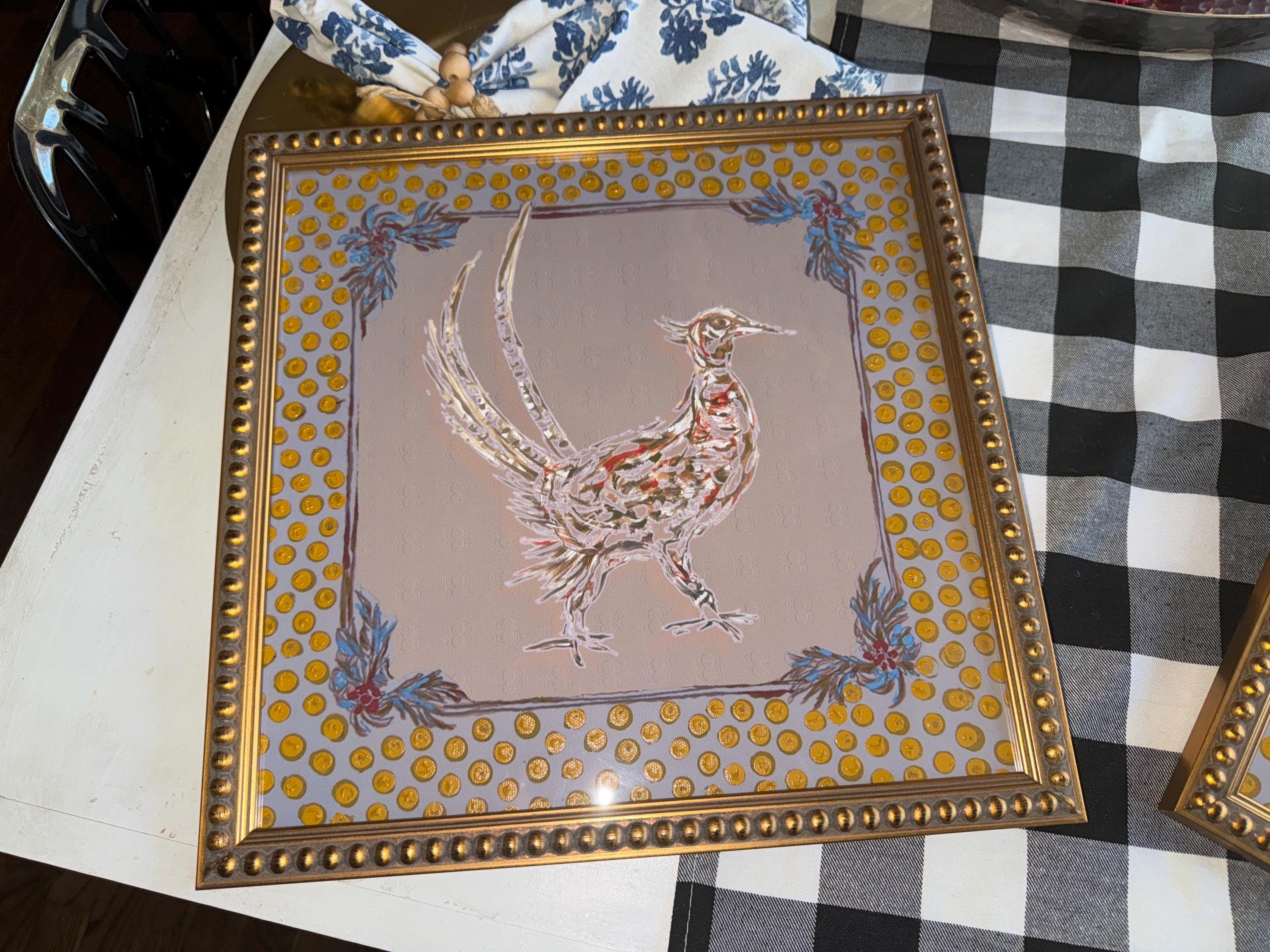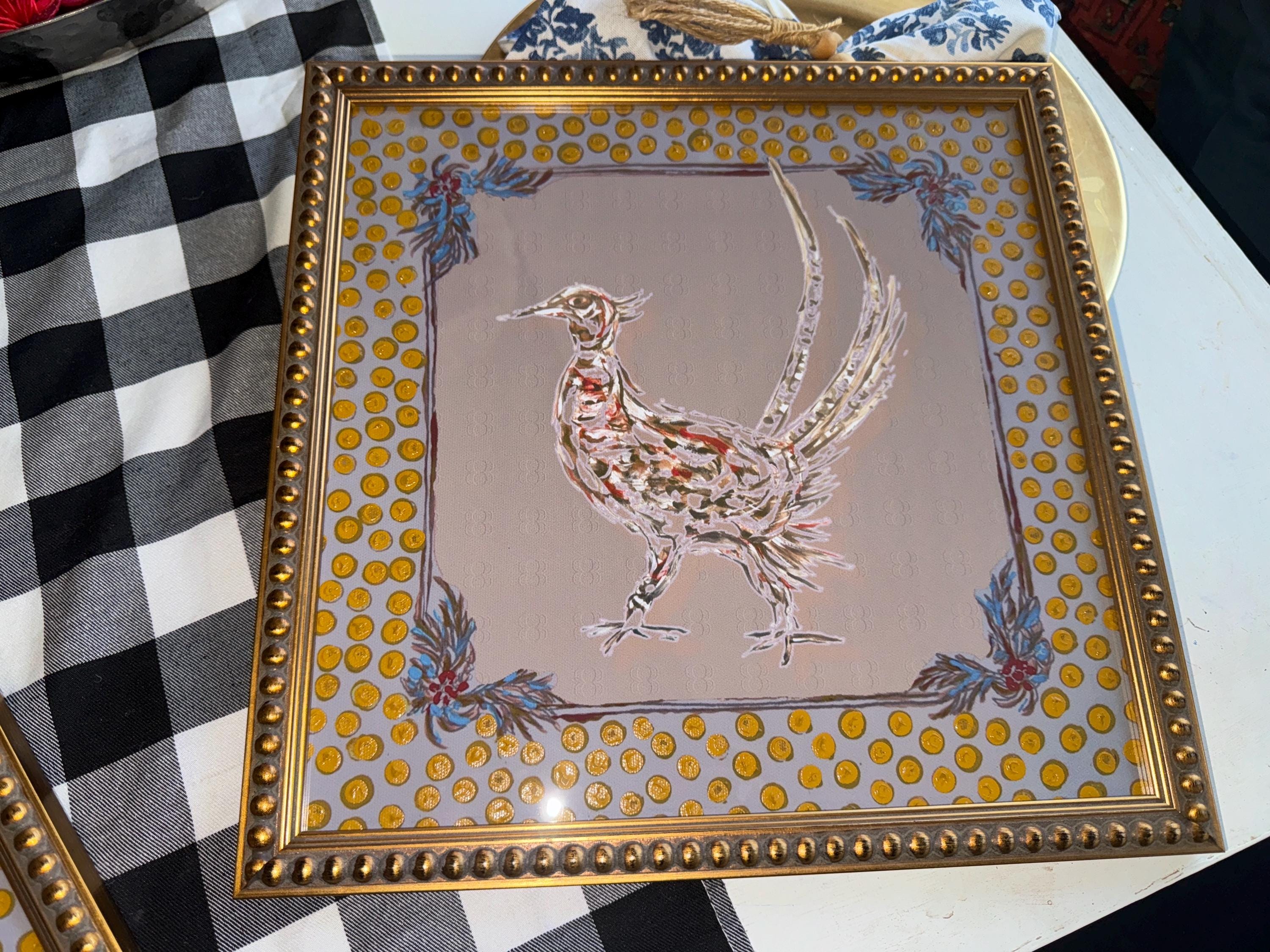 This listing is for the pair of fine art canvas paper pheasant prints at 12x12 image size and then framed in these exquisite wooden, gilded gold leaf, beaded frames at overall dims of 13x13. These come ready to hang with real glass fronts and metal sawtooth hangers on the back.