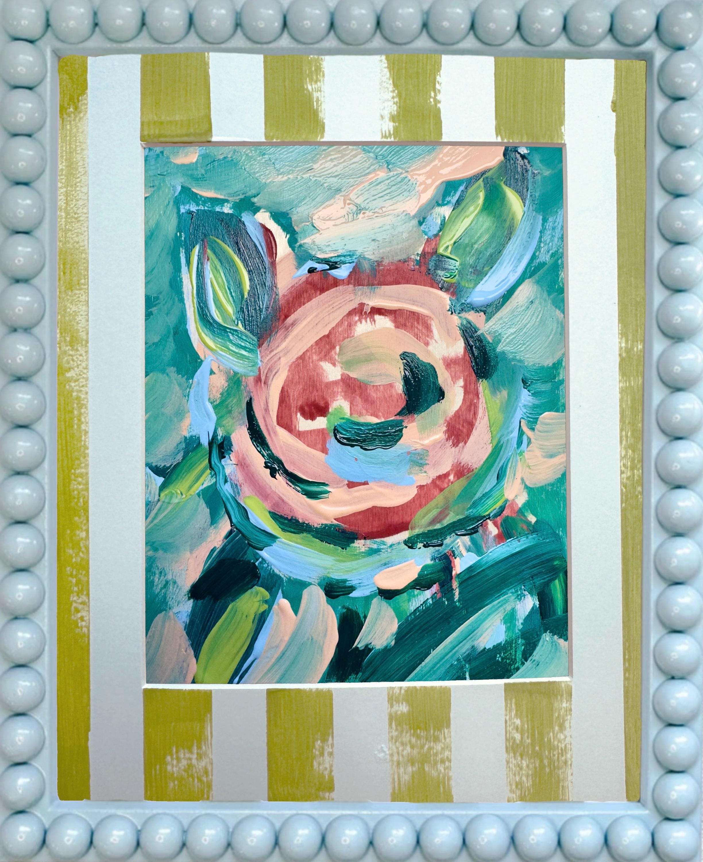 Abstract Floral Print Trio: Hand-Painted Striped Mat, Lacquered Bobbin Frames