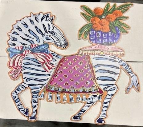 This listing is for the pair of Posh Pouf Zebra door hangers sized at 20” height by 15” width. These are made from 6mm PVC composite board.