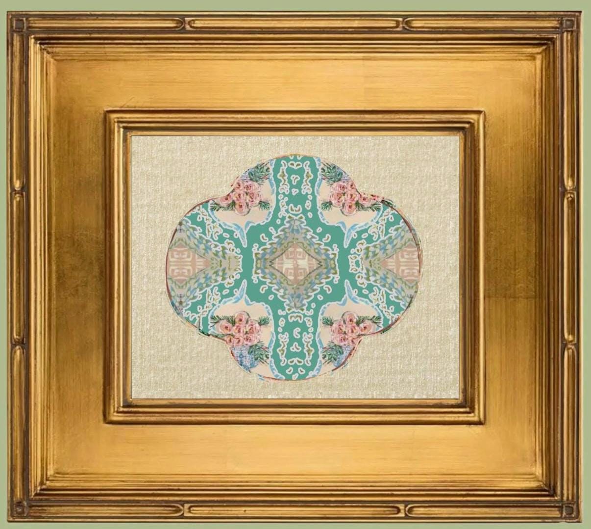 The prints come framed in these exquisite gilded gold leaf, wide moulding, wooden designer frames at 5x7 to overall dims of 12x14. These come without glass fronts for a museum quality. Comes with hanging hardware pre-mounted on the back and signed on the back by me, the artist.