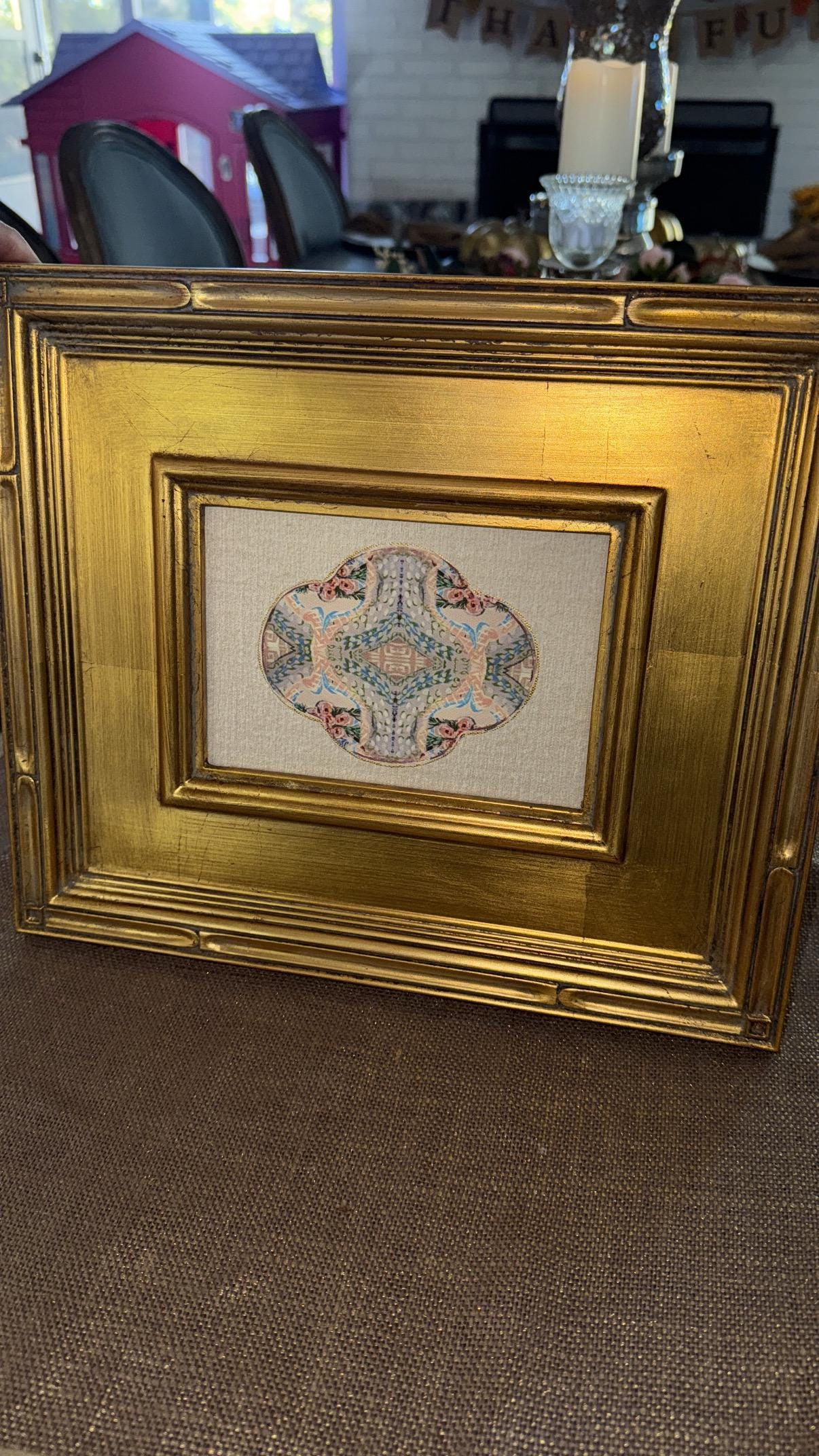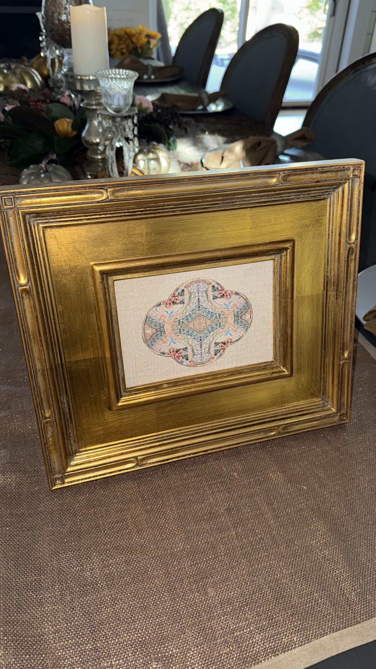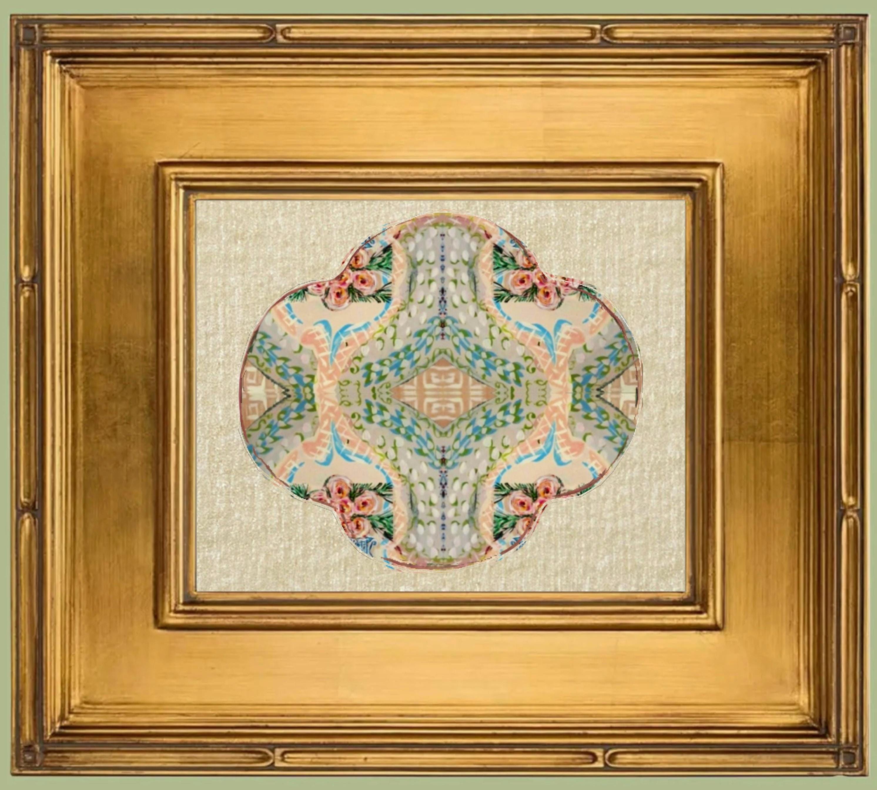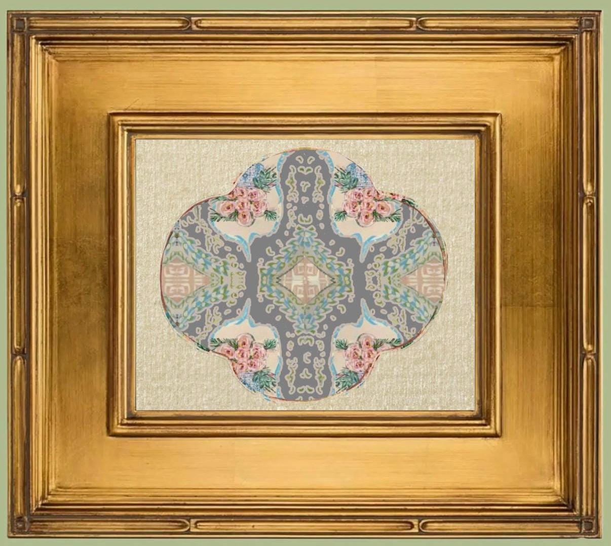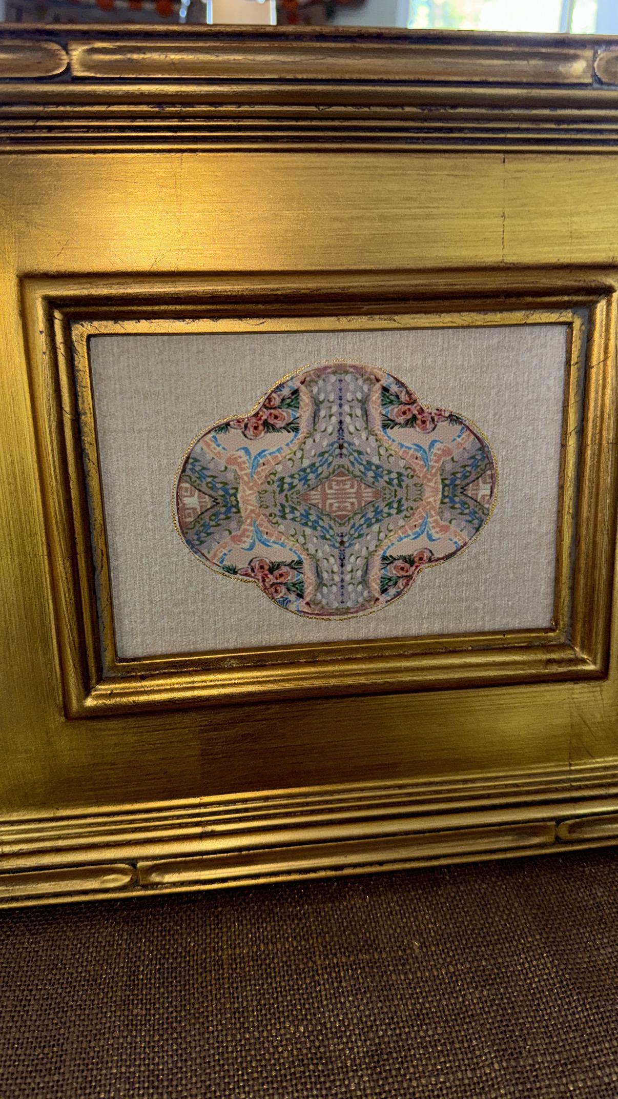 Fine Art Rose Medallion Style Canvas Paper Print Framed in Exquisite Wooden Gilded Gold Leaf Frame
