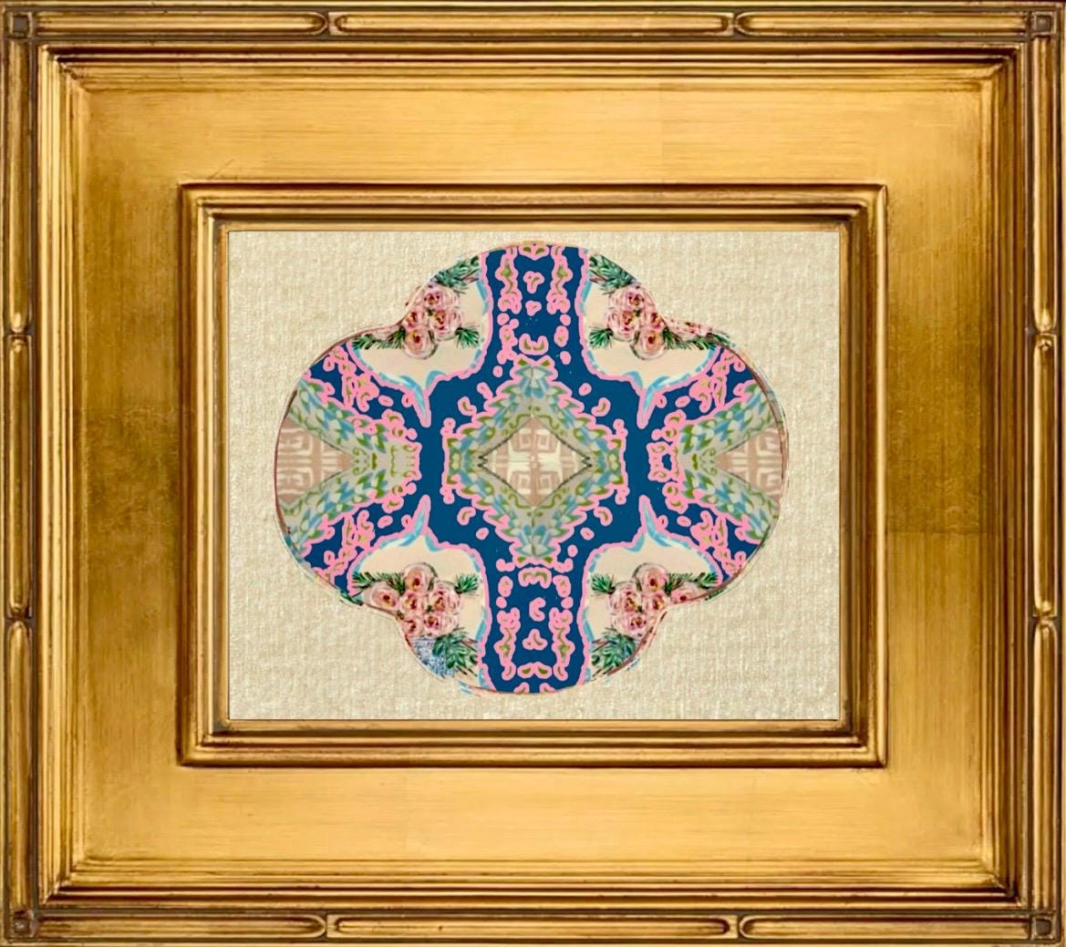 Single LARGE Fine Art Rose Medallion on Linen Style Print Framed in Exquisite Gilded Gold Leaf Wooden Museum Frame