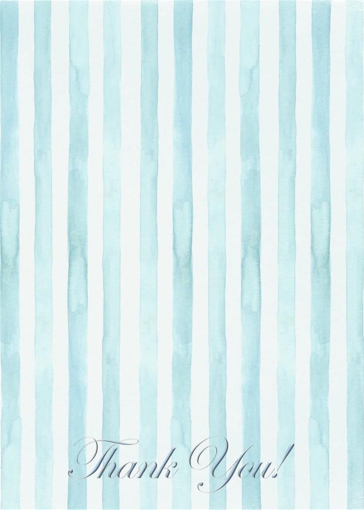 The back side is set with a light blue watercolor stripe design (no need to edit the back). The back is intended to be used for hand-written thank you notes upon printing by a third-party company/source. The front side is editable for the monogrammed initials only.