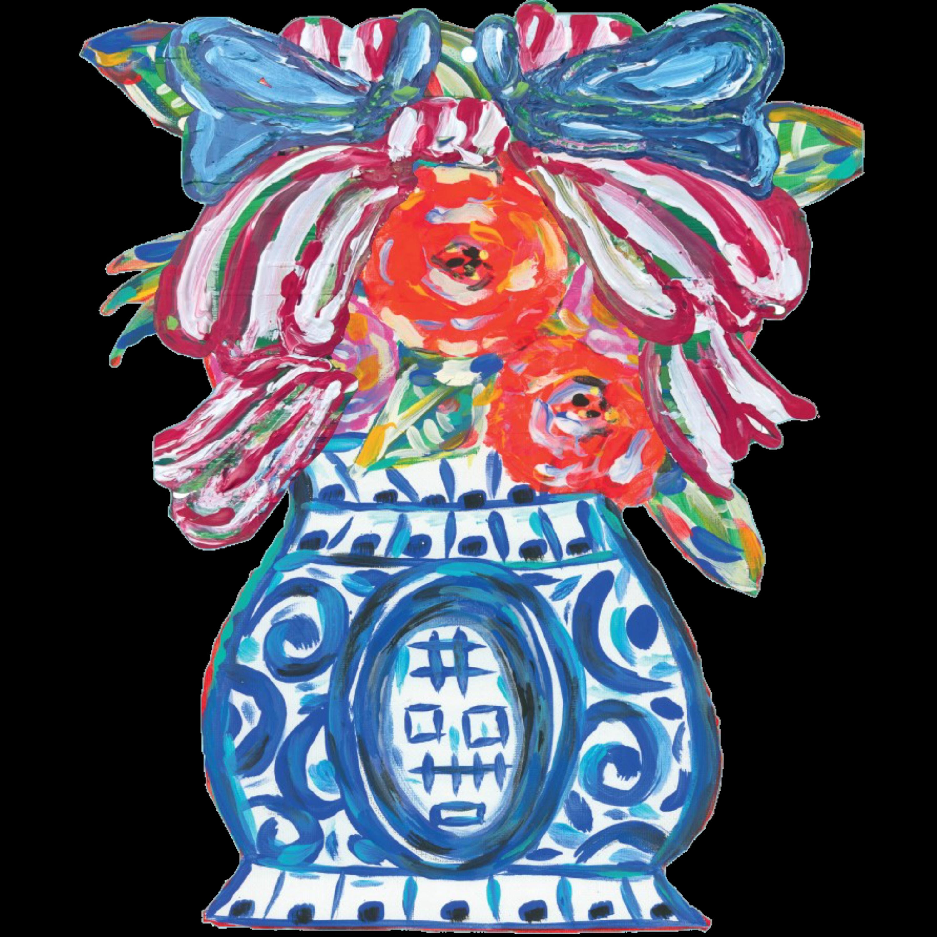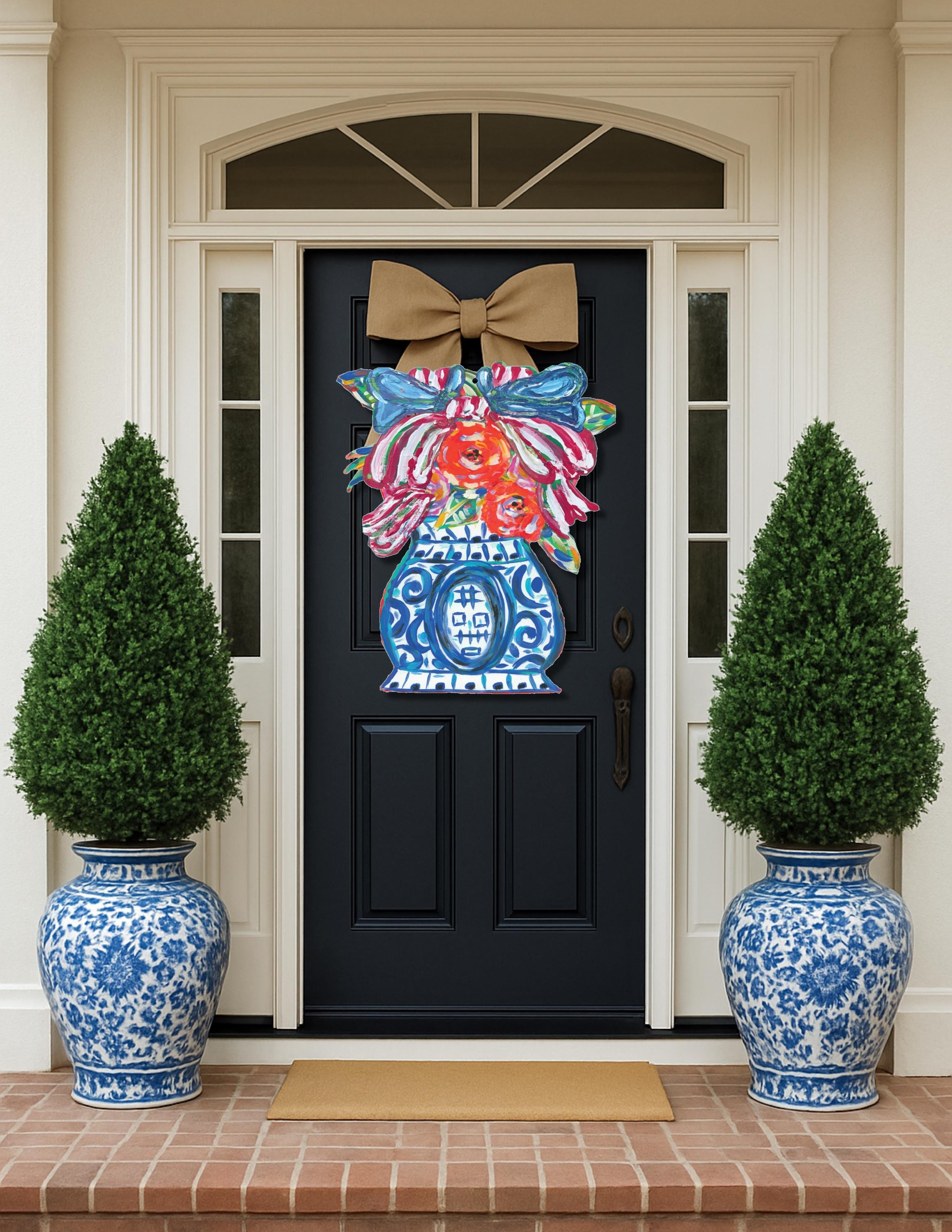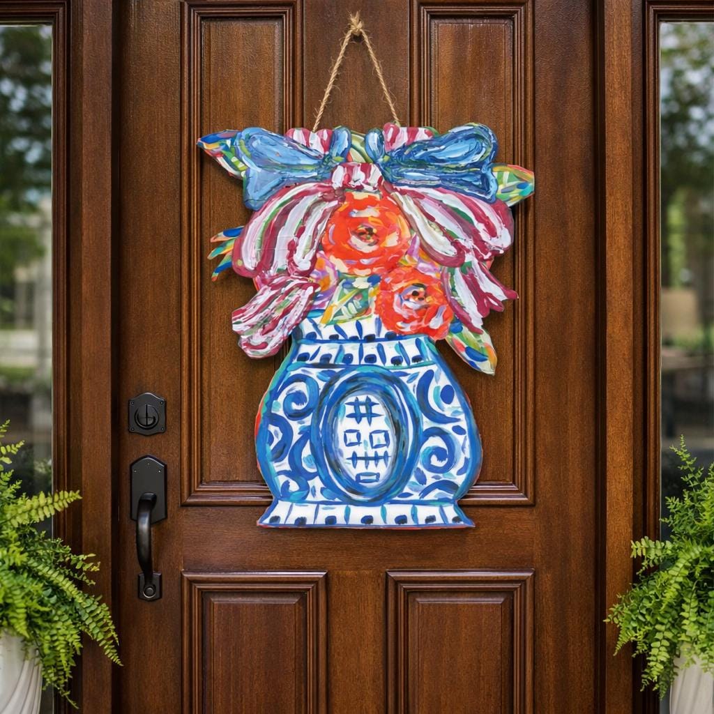 LARGE Designer RWB Patriotic Bow and Florals in Ginger Jar Door Hanger (does NOT come with bow)